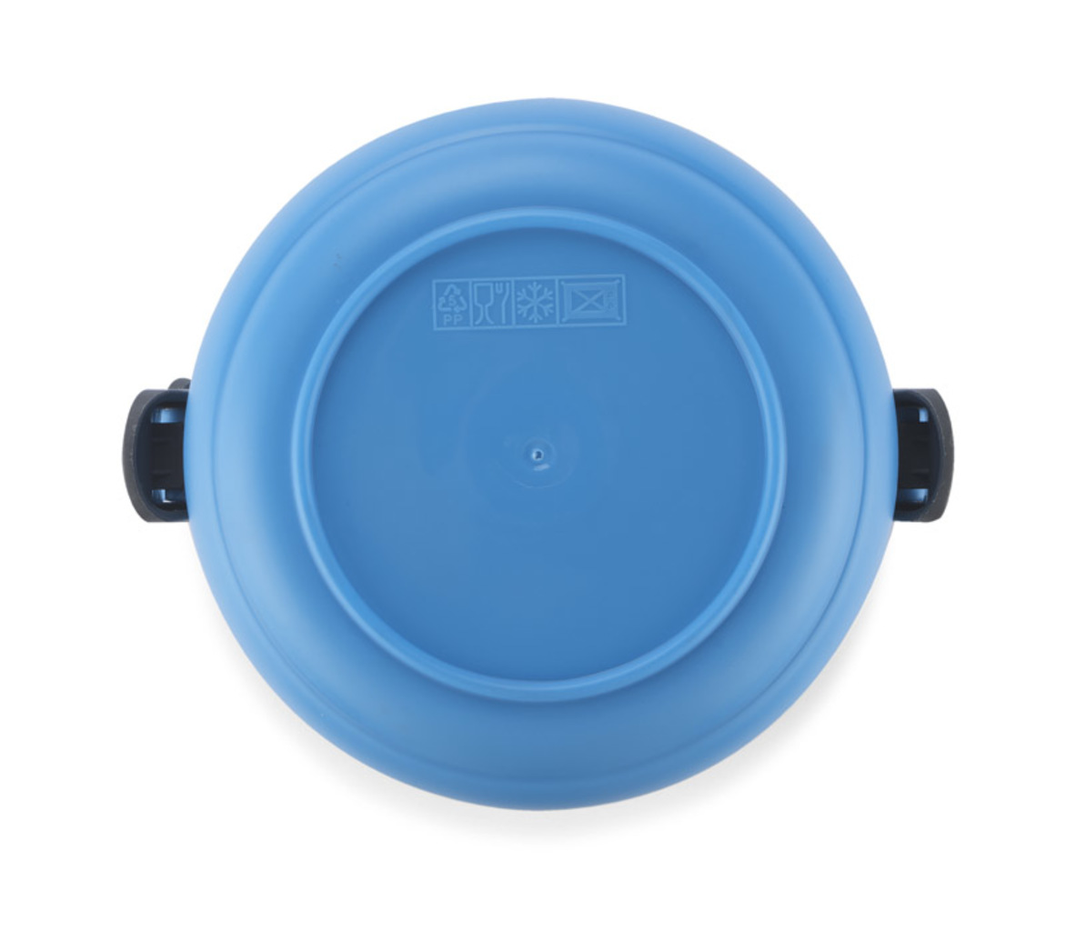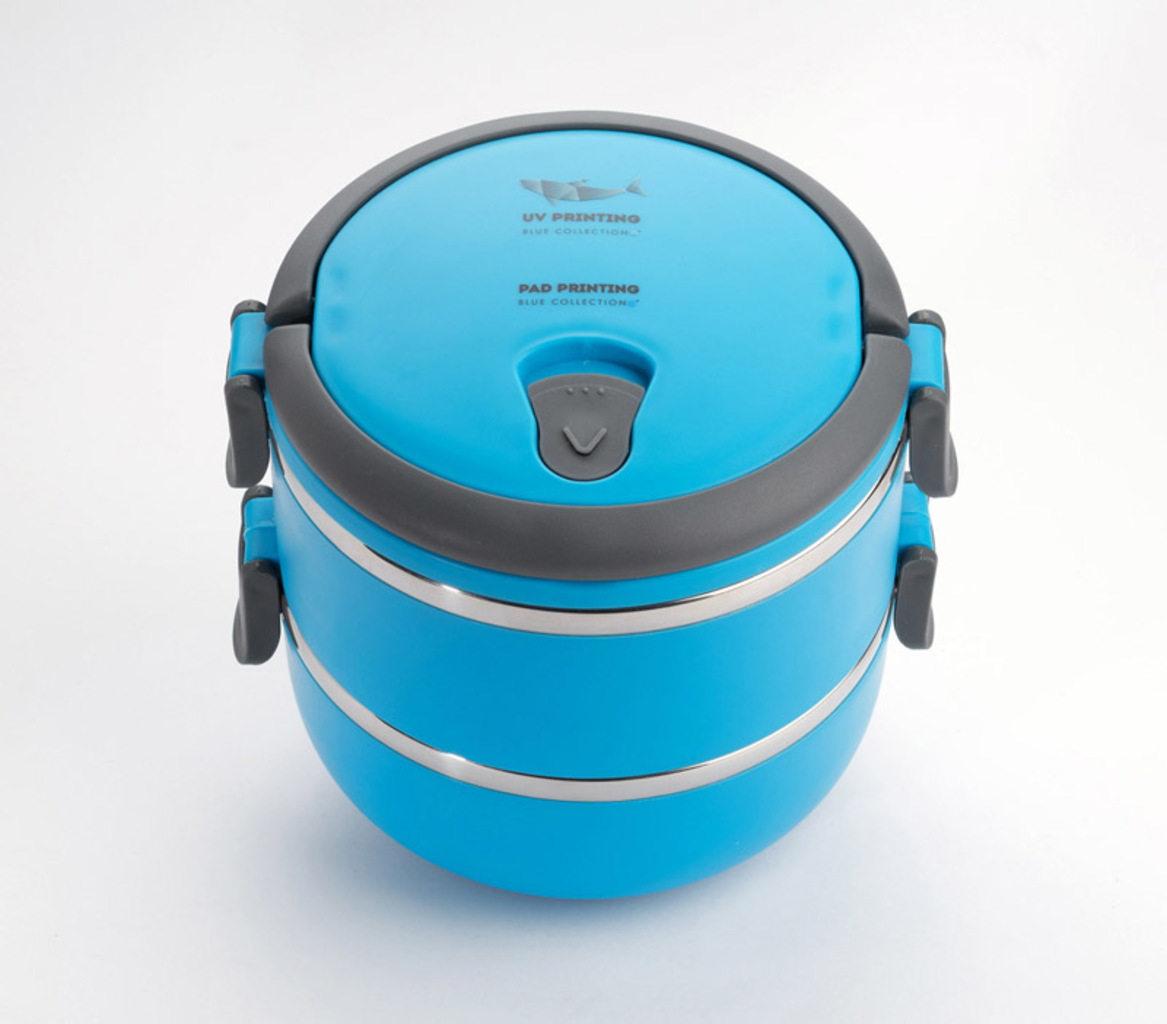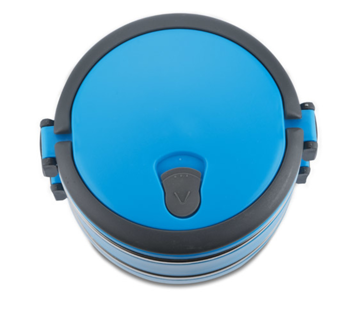 Kontejner s vnitřkem z nerezové oceli je rozdělen do dvou částí, které lze skládat, což zajišťuje pohodlný a pohodlný přenos dvouchodových jídel. Horní komora je vybavena těsněním. Plastové madla jsou sklopná. Celková kapacita: 1400 ml.