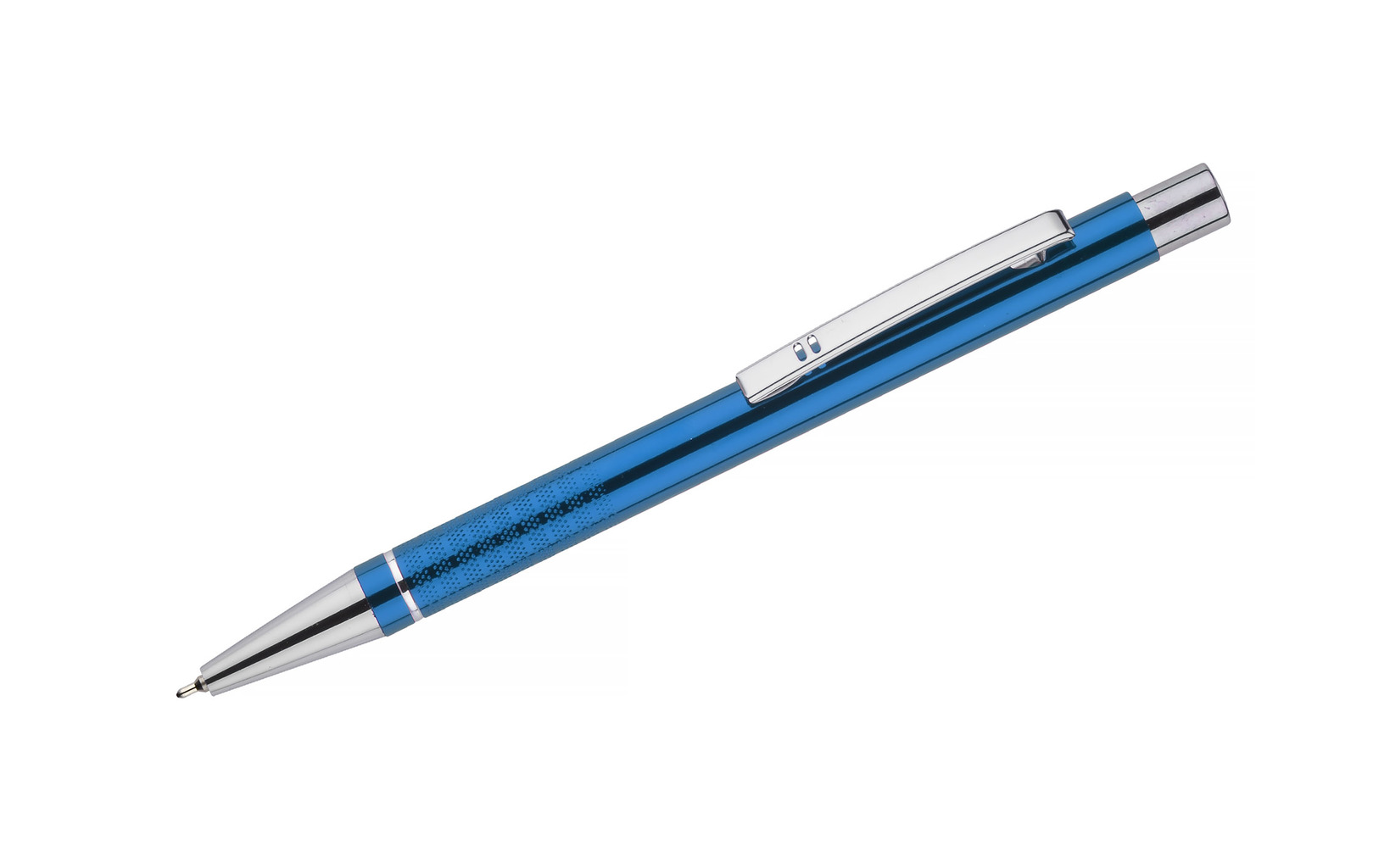 BONITO pen je klasická elegantní kovová pera ve metalických barvách se chromově pozlacenými finiši. Vyrobeno z hliníku. Tělo je ozdobeno stříbrným prstenem na dně a pásky s jemně chromovanou strukturou. Pero s kuličkovým perom obsahuje nový typ náplně s polo-gelovou inkoustem, tloušťkou 0,7 mm. Vloženo modré.