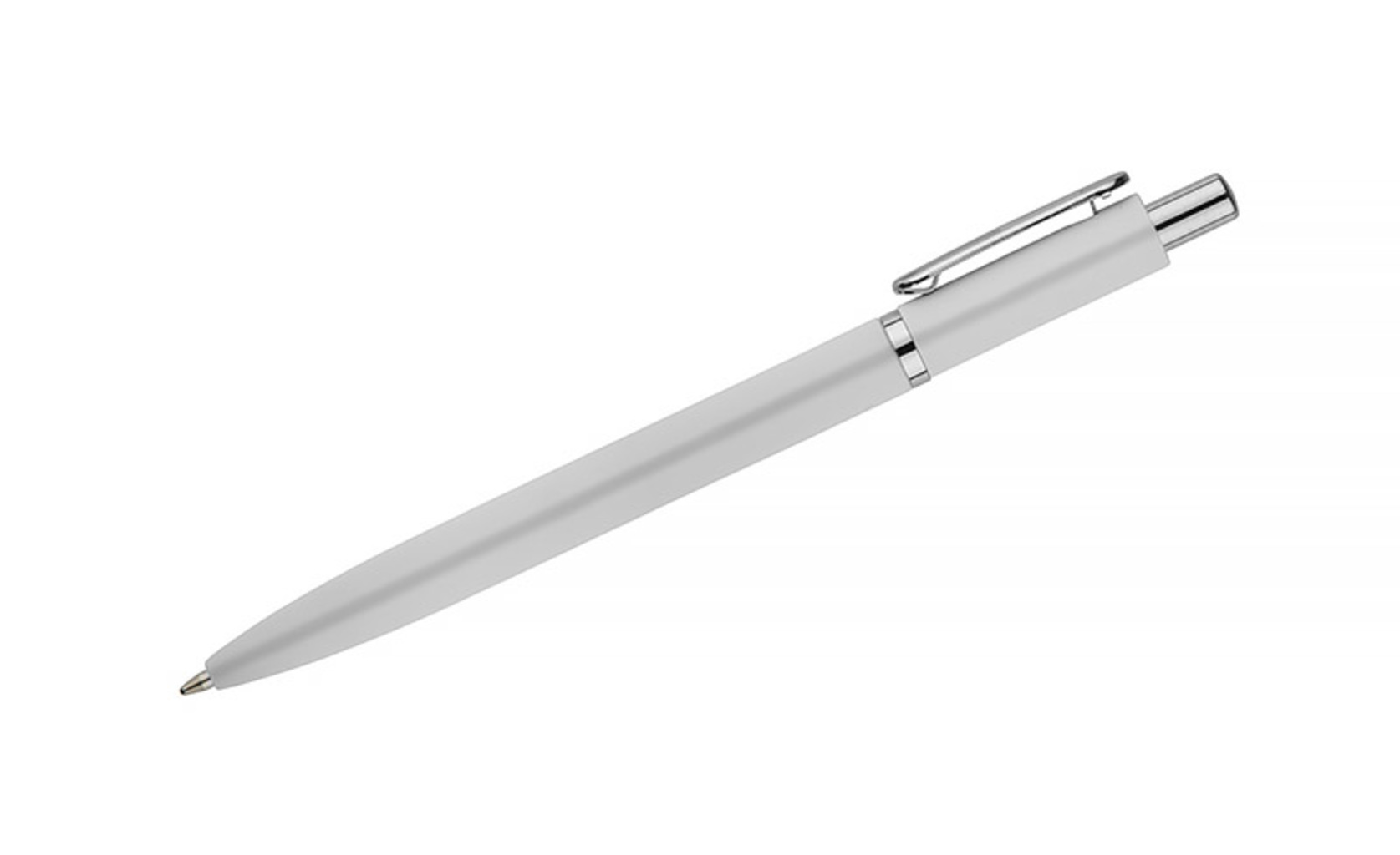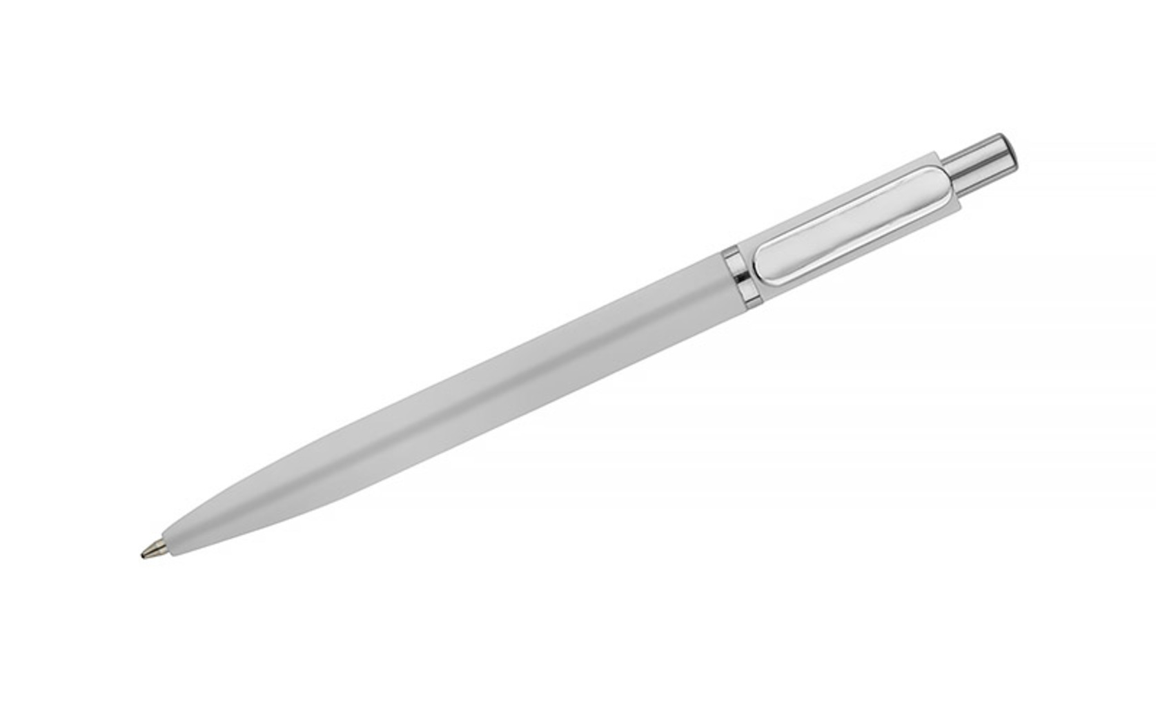 Kuličkové pero ELMO je elegantní model s moderním vzhledem, vyrobený z kovu s povrchovou úpravou soft touch. Pogumovaný povrch zajišťuje příjemný a bezpečný úchop a krátký zaoblený klip ve stříbrném kovovém provedení dodává peru jemný nádech. Pero je vybaveno automatickým zasouvacím mechanismem a náplní typu G2 s tloušťkou písma 0,7 mm, která zaručuje hladké a přesné psaní.