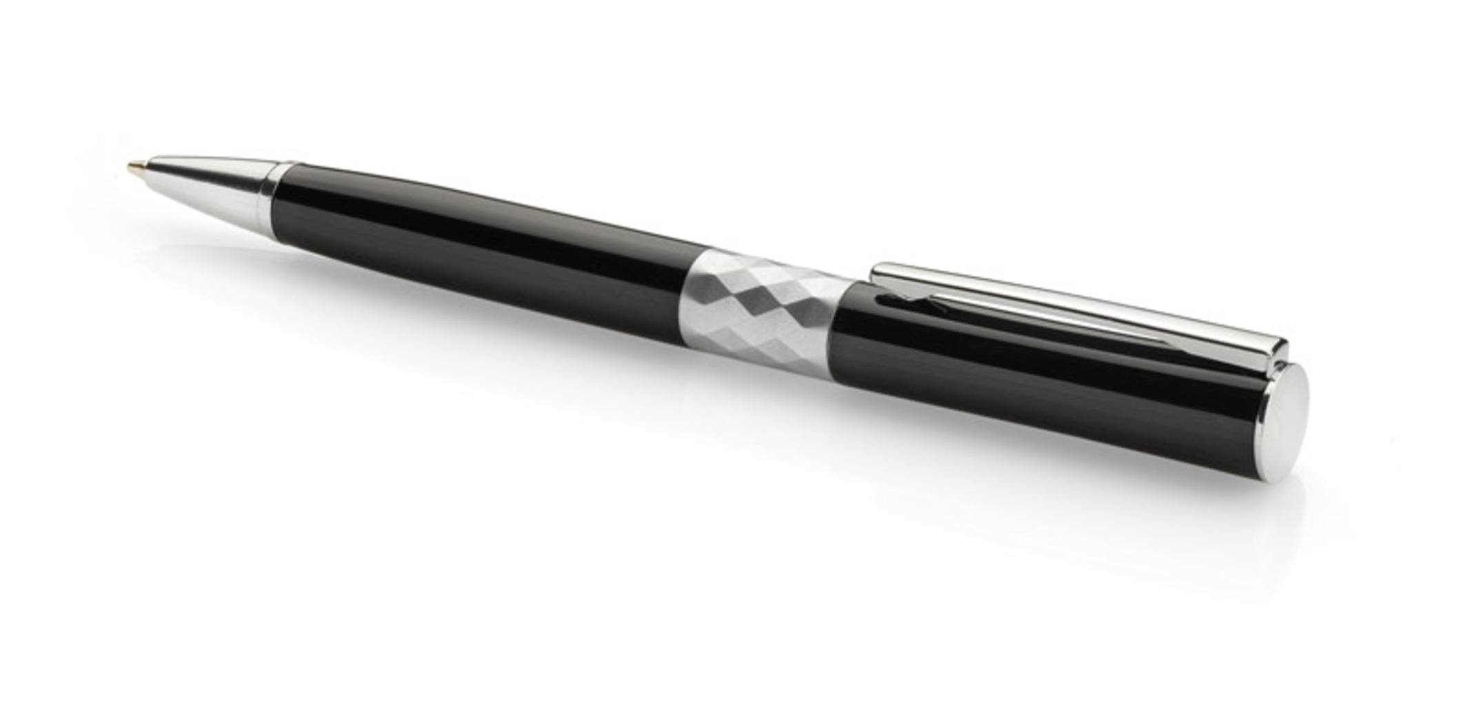 Design moderního pera s nejnovějšími trendy na mysli. Uprostřed těla pera je dekorativní prstenec, jehož tvar připomíná křišťál a dává tomuto peru velmi elegantní vzhled. Označení může být provedeno na těle produktu.