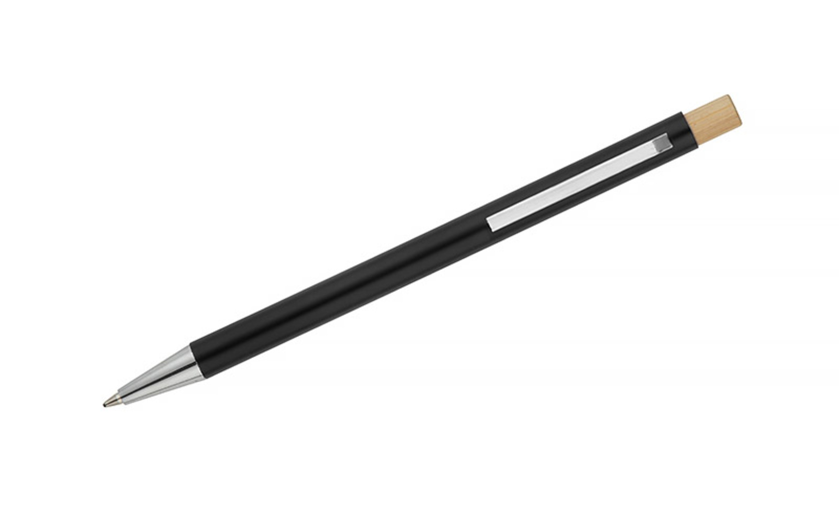 Kuličkové pero KIVO je tenký a lehký model se saténovým povrchem, který poskytuje výjimečný komfort při psaní. Jemný bambusový knoflík je přirozeným akcentem, který podtrhuje moderní charakter pera. Automatický mechanismus umožňuje pohodlné vysunutí hrotu typu X20 o tloušťce 1,0 mm, což zaručuje měkké a rovnoměrné psaní. KIVO je elegantní a funkční reklamní pomůcka, ideální pro každodenní použití v kanceláři nebo během jednání.