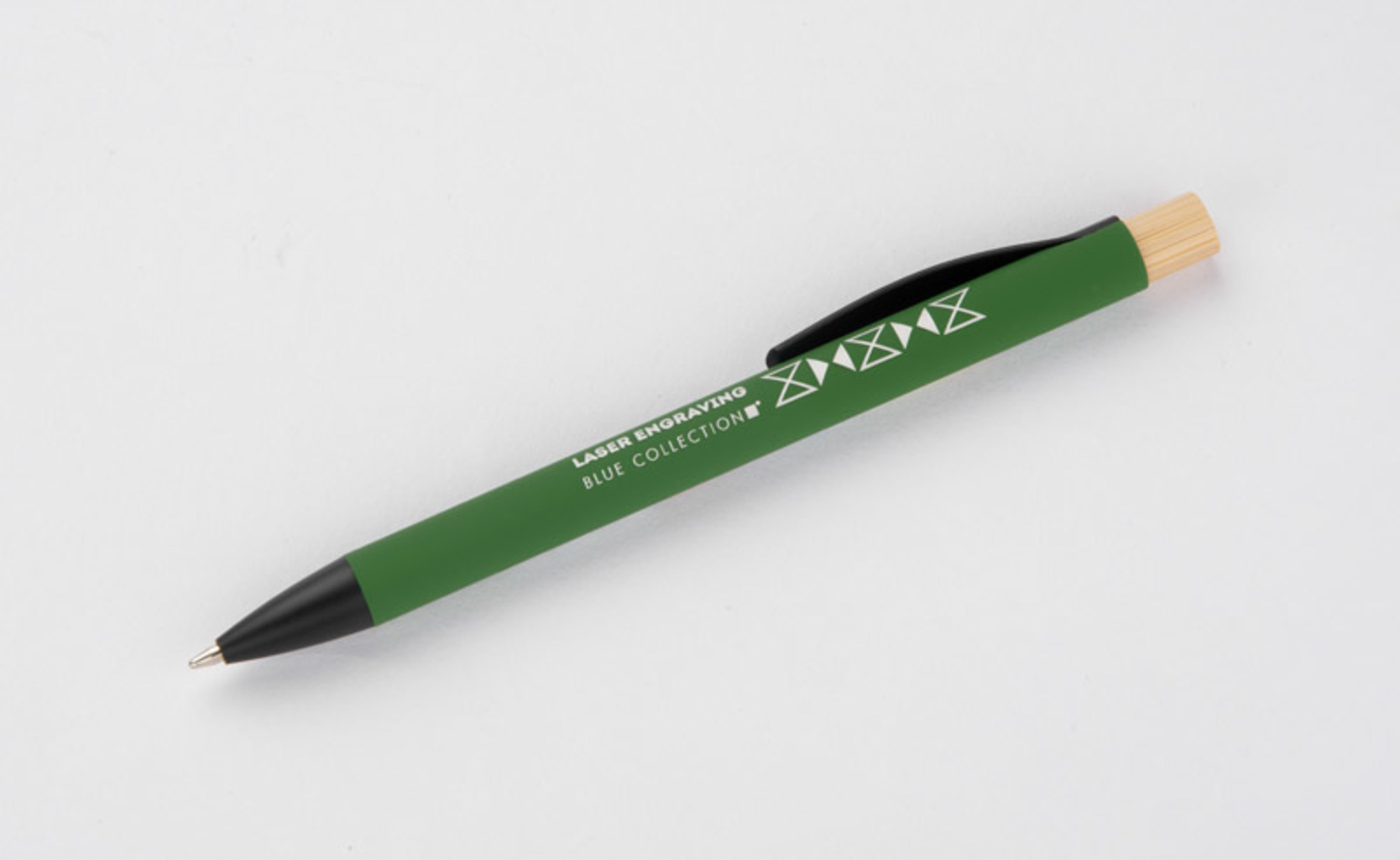 Kuličkové pero PIK je elegantní a funkční psací nástroj. Je vyrobeno z kovu a nabízí pevnost a odolnost, zatímco pogumovaný povrch „soft touch“ poskytuje pohodlí a potěšení při psaní. Je vybaven klipem pro připevnění pera ke kapse nebo k zápisníku. Vrchní část pera je navíc opatřena bambusovým tlačítkem, které dodává přirozený a stylový nádech. Pero PIK je dokonalou kombinací moderního designu a ekologického prvku, takže je vynikající volbou pro každodenní použití i jako dárek.
