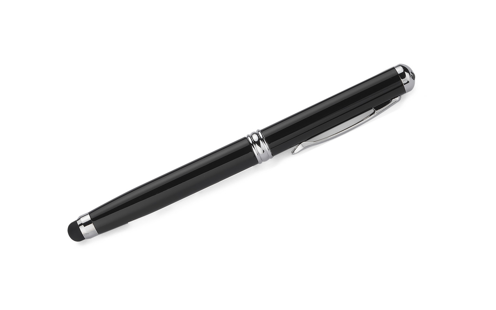 Długopis wykonany z metalu z 4 przydatnymi funkcjami: długopis, długopis dotykowy, wskaźnik laserowy i latarka. Jedna rzecz zawierająca wszystko, czego możesz potrzebować podczas prezentacji lub spotkań biznesowych. Logo zostanie wygrawerowane. Zgodnie z dyrektywą Unii Europejskiej i polskim standardem wskaźnik laserowy jest oznaczony ostrzegawczą etykietą.