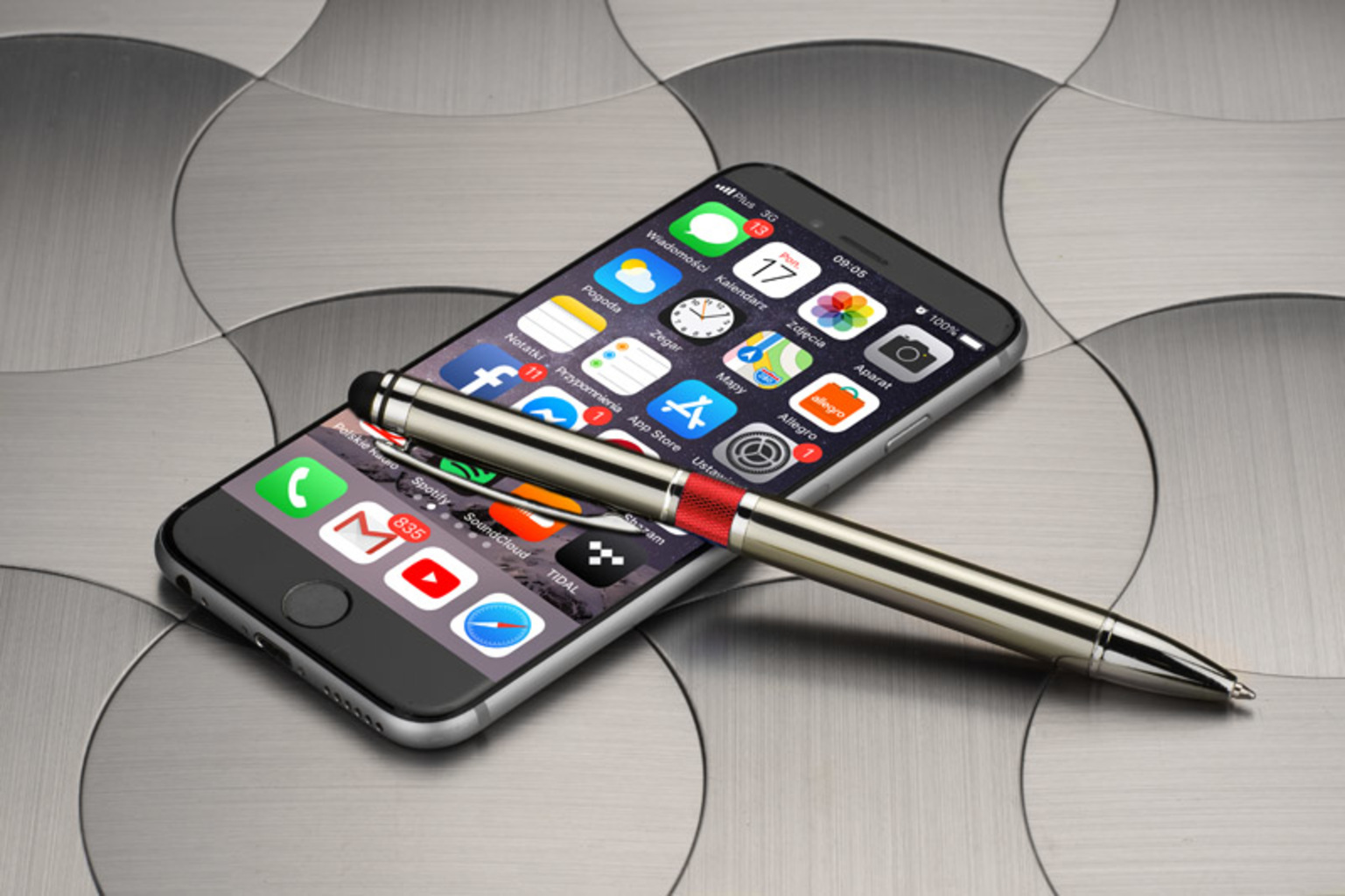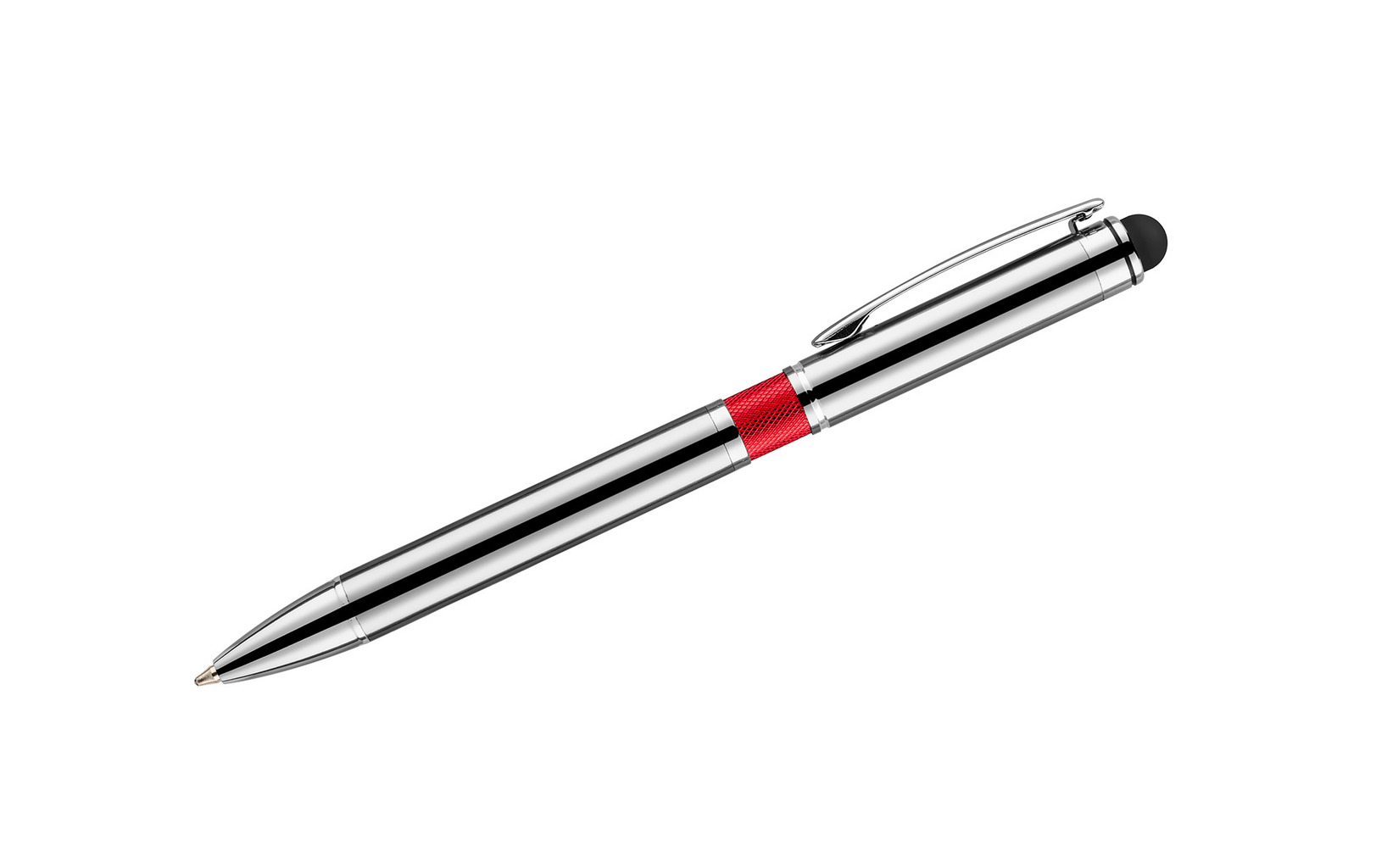 Elegantní kovová pero s barevnou lištou a dotykovým perem.