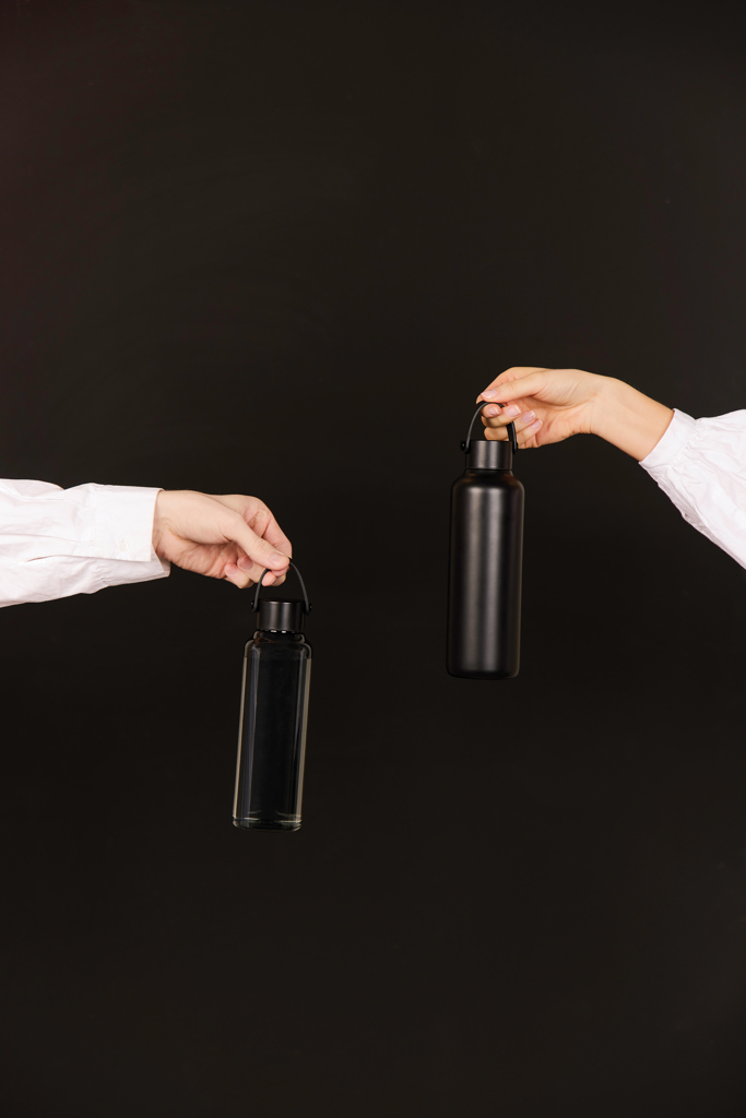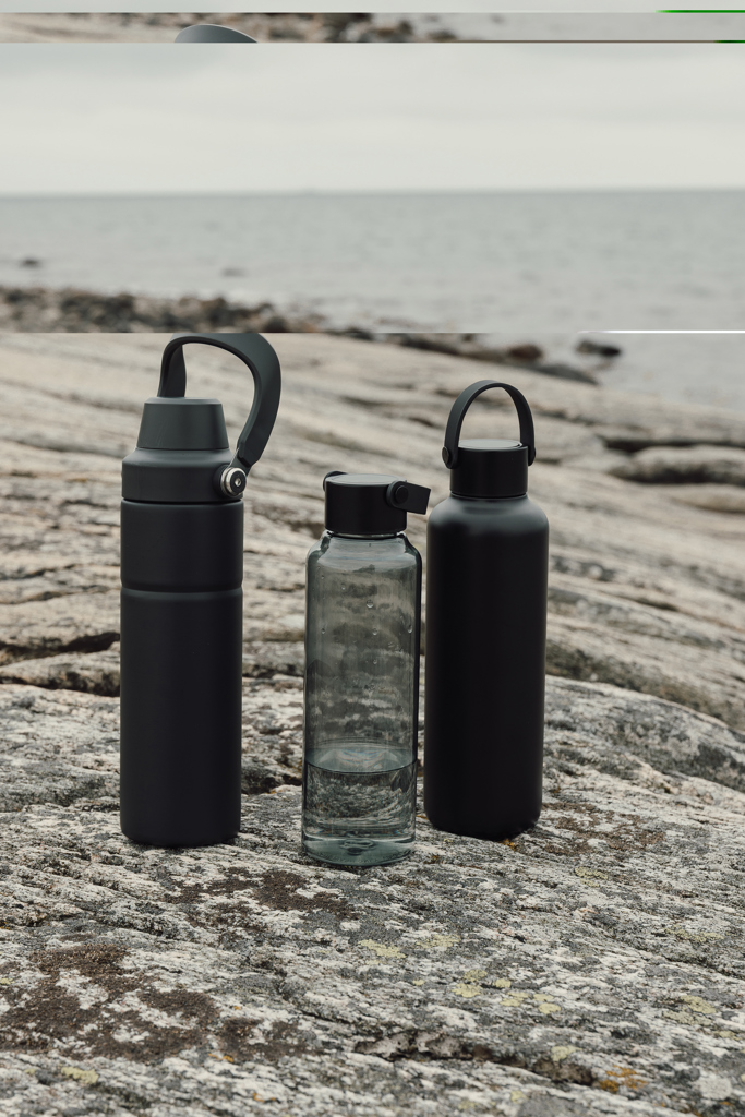 Láhev na vodu z BPA free recyklovaného PET materiálu s certifikací RCS. PU držadlo spolu s víčkem z nerezové oceli přidává nádech elegance. Není vhodná do myčky ani do mikrovlnné trouby, pouze ruční mytí. Pouze pro studené nápoje. Certifikováno RCS (Recycled Claim Standard), certifikace RCS zaručuje, že celý dodavatelský řetězec recyklovaných materiálů je certifikován. Celkový obsah recyklovaného materiálu je založen na celkové hmotnosti výrobku. Tento produkt obsahuje 61 % RCS certifikovaného recyklovaného PET materiálu.