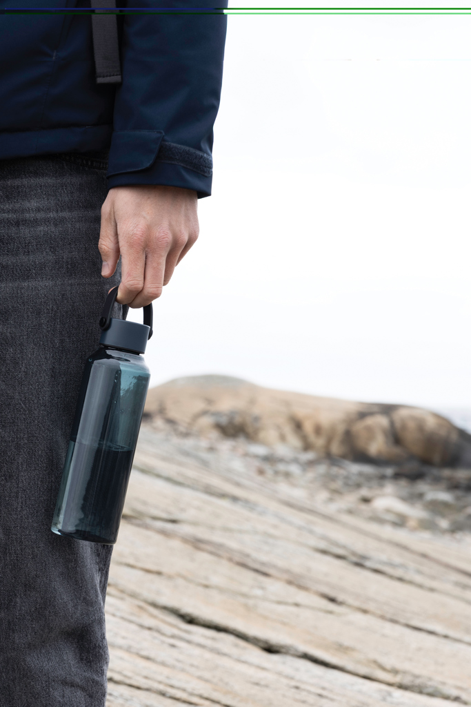 Láhev na vodu z BPA free recyklovaného PET materiálu s certifikací RCS. PU držadlo spolu s víčkem z nerezové oceli přidává nádech elegance. Není vhodná do myčky ani do mikrovlnné trouby, pouze ruční mytí. Pouze pro studené nápoje. Certifikováno RCS (Recycled Claim Standard), certifikace RCS zaručuje, že celý dodavatelský řetězec recyklovaných materiálů je certifikován. Celkový obsah recyklovaného materiálu je založen na celkové hmotnosti výrobku. Tento produkt obsahuje 61 % RCS certifikovaného recyklovaného PET materiálu.