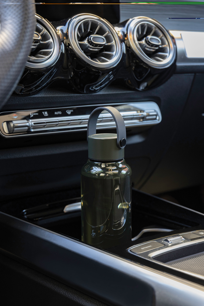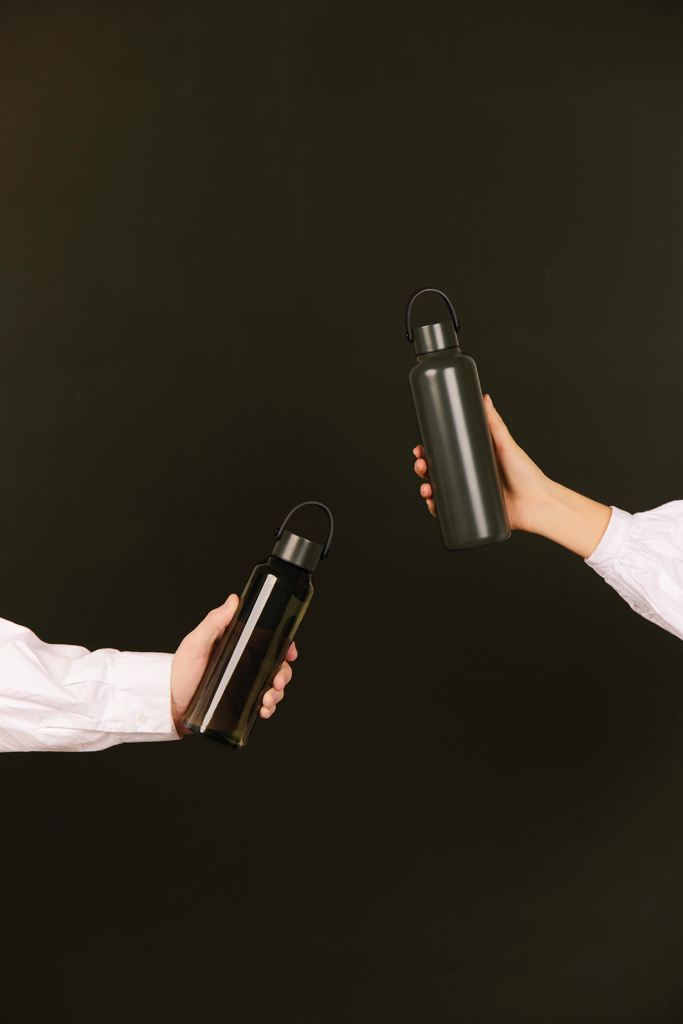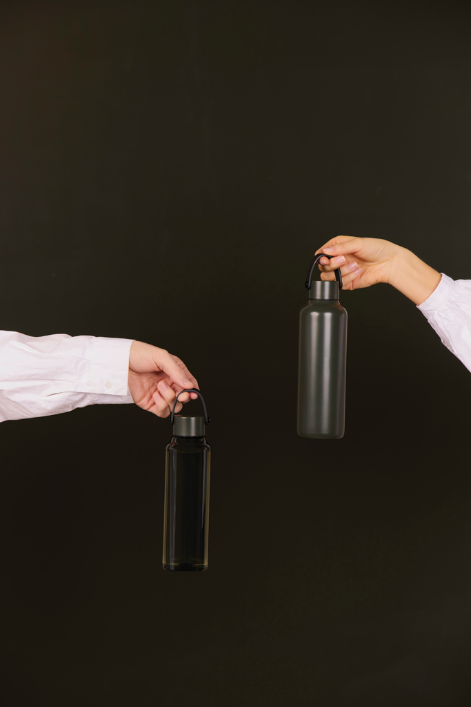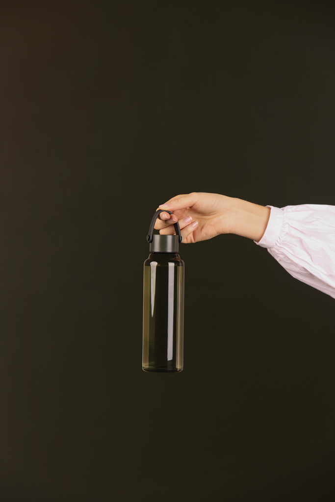 Láhev na vodu z BPA free recyklovaného PET materiálu s certifikací RCS. PU držadlo spolu s víčkem z nerezové oceli přidává nádech elegance. Není vhodná do myčky ani do mikrovlnné trouby, pouze ruční mytí. Pouze pro studené nápoje. Certifikováno RCS (Recycled Claim Standard), certifikace RCS zaručuje, že celý dodavatelský řetězec recyklovaných materiálů je certifikován. Celkový obsah recyklovaného materiálu je založen na celkové hmotnosti výrobku. Tento produkt obsahuje 61 % RCS certifikovaného recyklovaného PET materiálu.