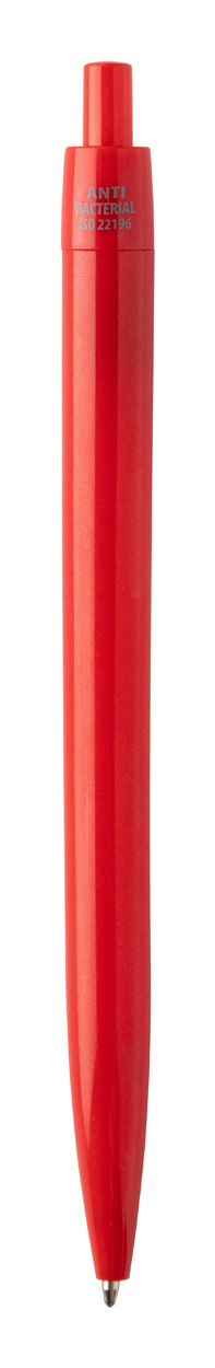 Plastové kuličkové pero s antibakteriálním tělem. Obsahuje přísadu nano stříbra, která zabraňuje růstu bakterií na těle pera. Se stiskacím mechanismem a modrou náplní. V souladu s ISO 22196: 2011.