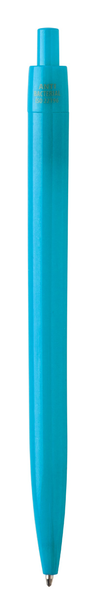 Plastové kuličkové pero s antibakteriálním tělem. Obsahuje přísadu nano stříbra, která zabraňuje růstu bakterií na těle pera. Se stiskacím mechanismem a modrou náplní. V souladu s ISO 22196: 2011.