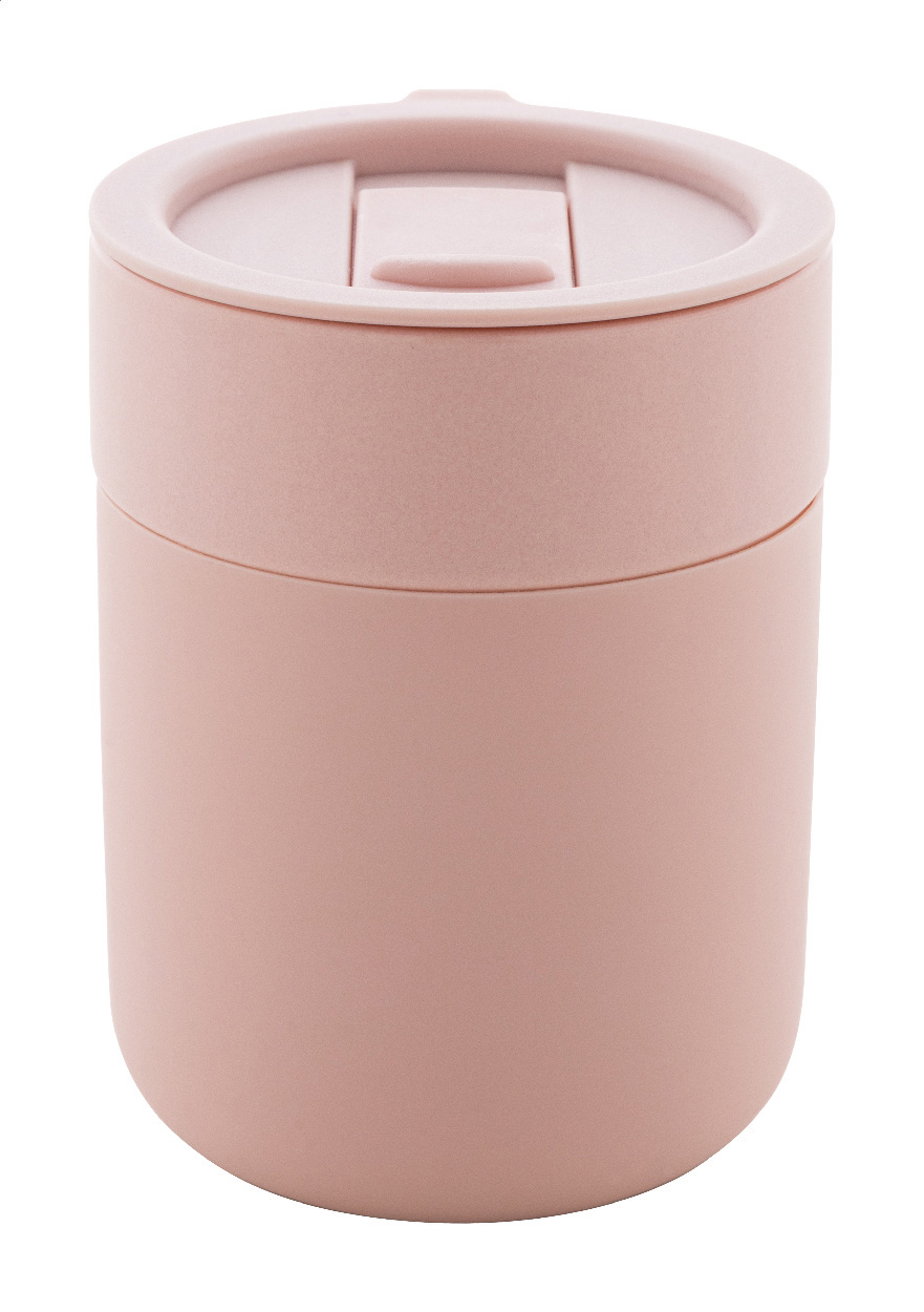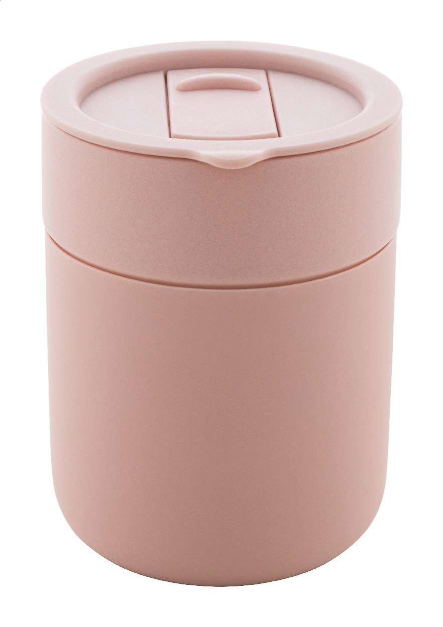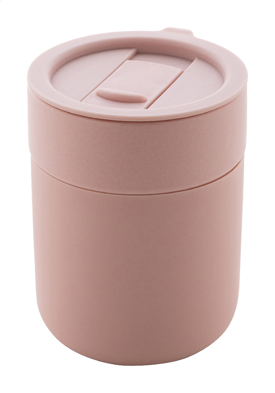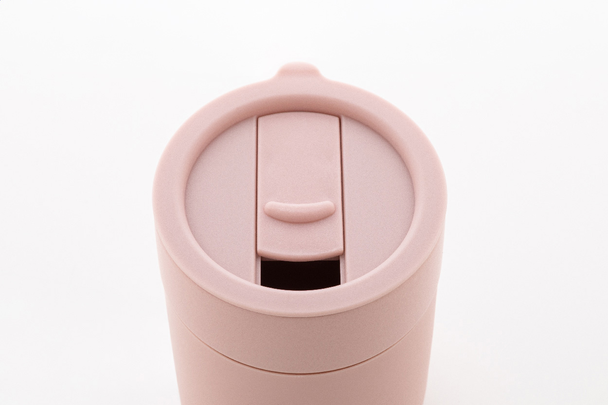 Keramický cestovní kelímek potažený silikonem s víčkem na pití z plastu PP. Objem 300 ml.