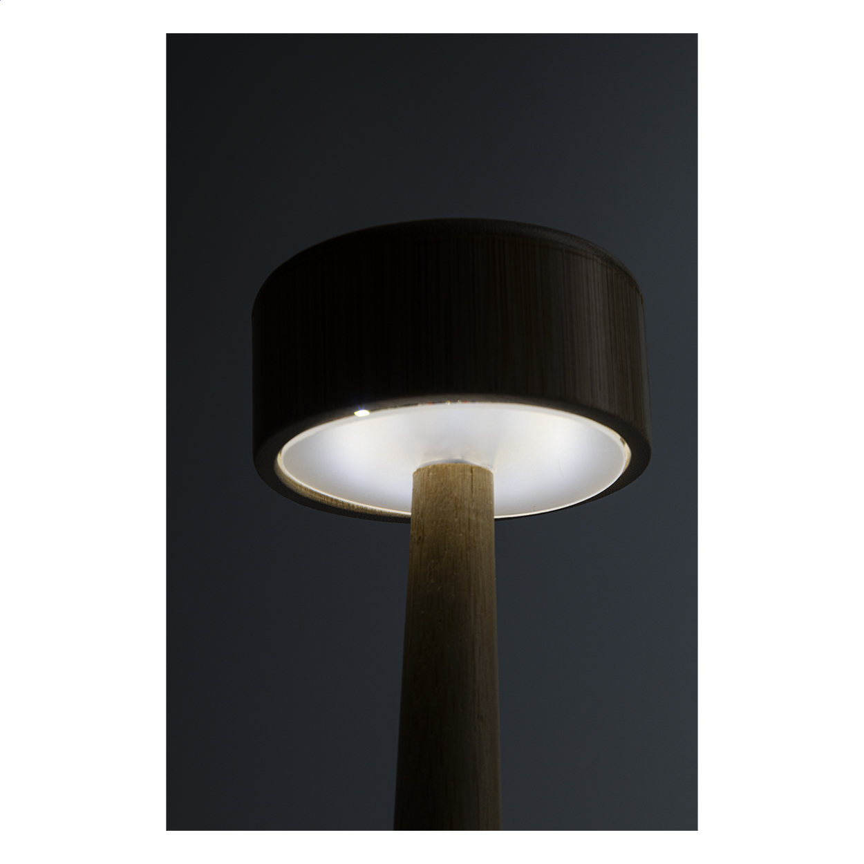Bambusová stolní lampa s 24 LED diodami a 800 mAh dobíjecí baterií přes USB. S režimy teplého, přirozeného a studeného světla. Včetně nabíjecího kabelu USB.