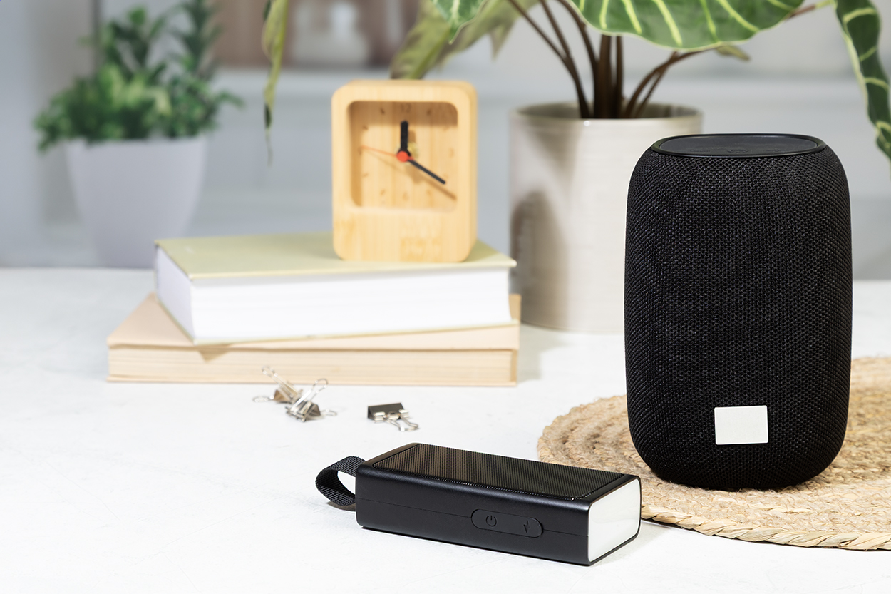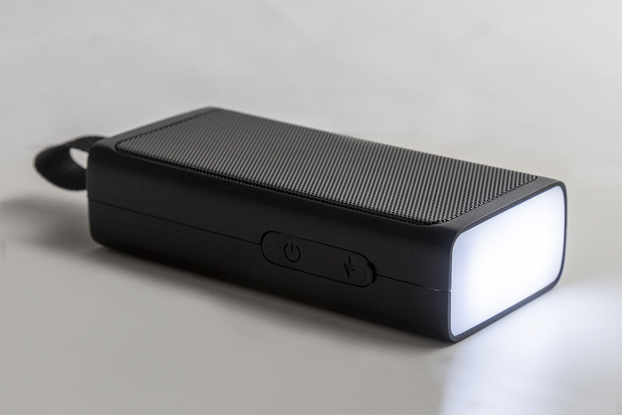 Bezdrátový reproduktor z recyklovaného ABS s kovovou síťovinou, LED svítilnou a magnetickou funkcí. S vestavěnou dobíjecí baterií (500 mAh). Včetně USB nabíjecího kabelu.