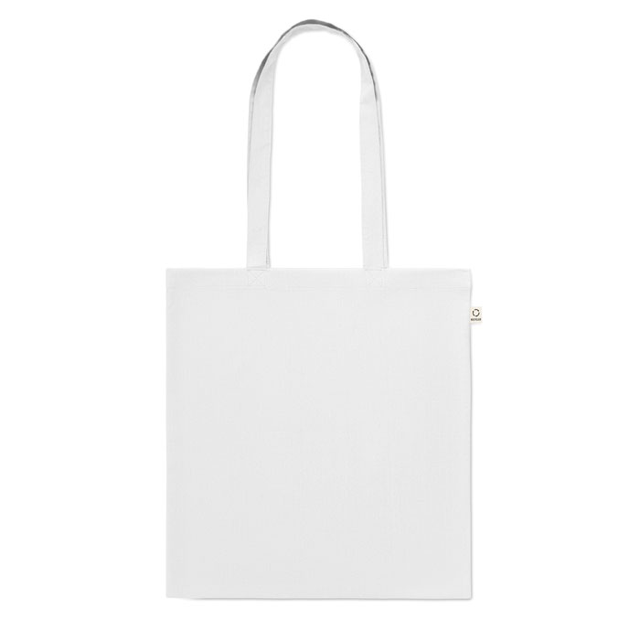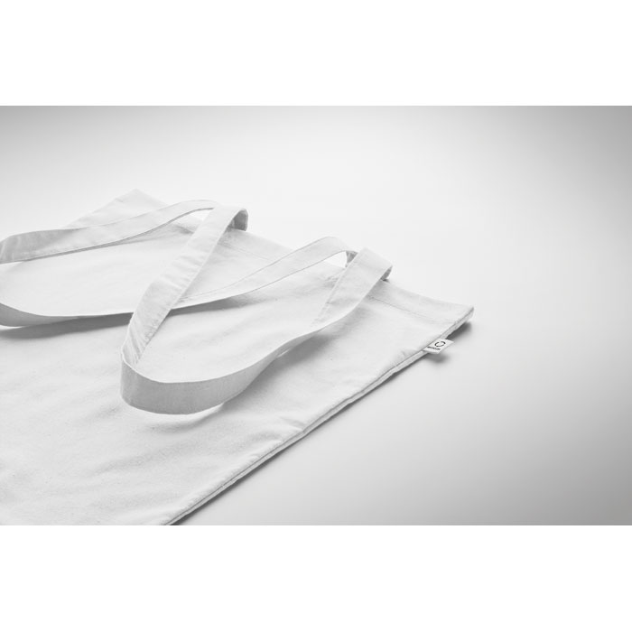 Nákupní taška z recyklované předspotřební bavlny (70 % recyklovaná bavlna a 30 % RPET) s dlouhými uchy. 140 gr/m².