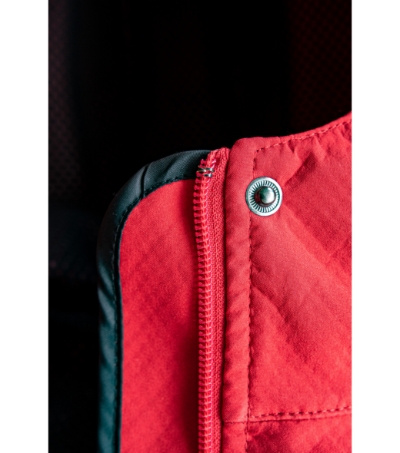 3vrstvý softshell s membránou, efektní textura softshellu, úprava Nanotex® zabraňující průniku vody, celopropínací spirálový zip s klopou, kapuce na stažení šňůrkou, kapuce a lemy rukávů nastavitelné suchým zipem, kapsy s reverzním spirálovým zipem, náprsní kapsa, tvarovaný a mírně prodloužený zadní díl, kontrastní prvky, Údržbové informace pro softshellový materiál