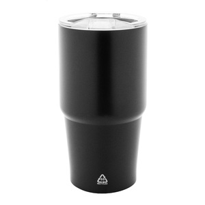 Dvoustěnný vakuově izolovaný termohrnek z recyklované nerezové oceli s víčkem z polystyrenového plastu. 600 ml.