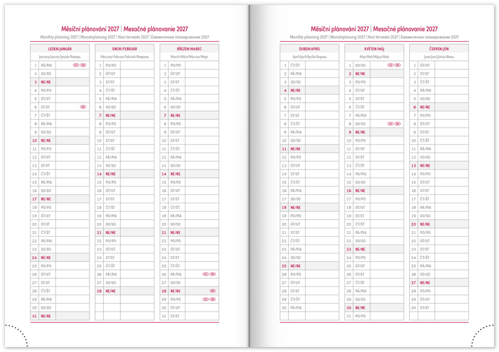 • měsíční plánovací kalendář 2027