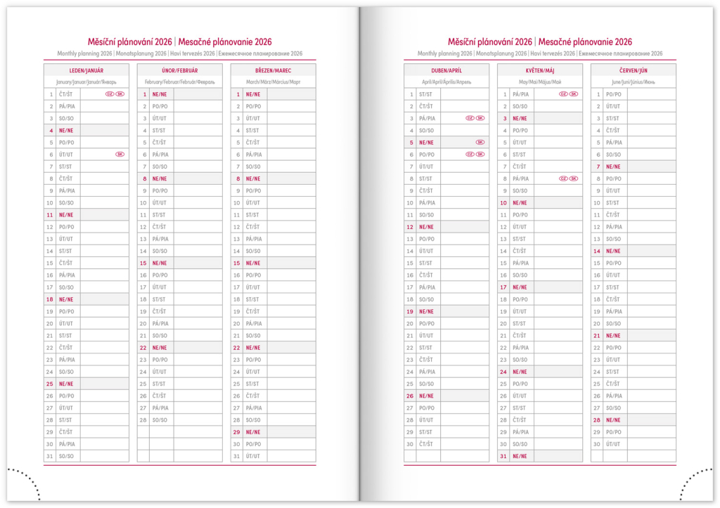• roční plánovací kalendář 2026–2027