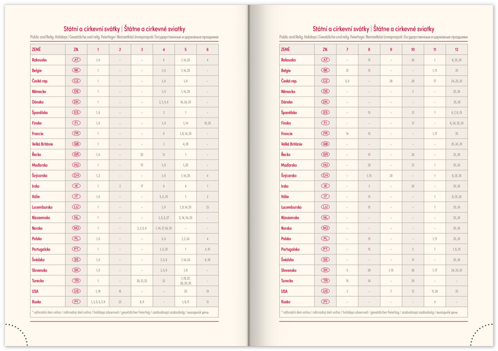 • svátky České a Slovenské republiky a mezinárodní svátky