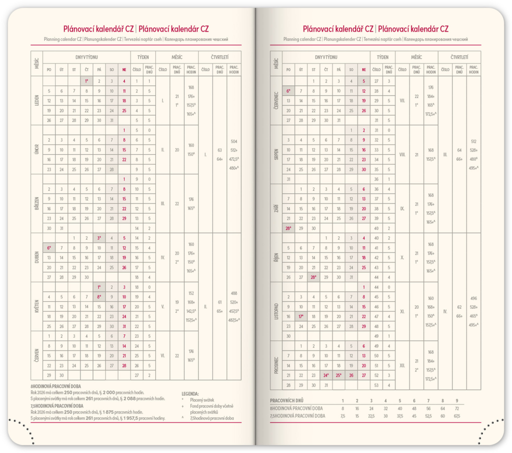 • pracovní plánovací kalendář