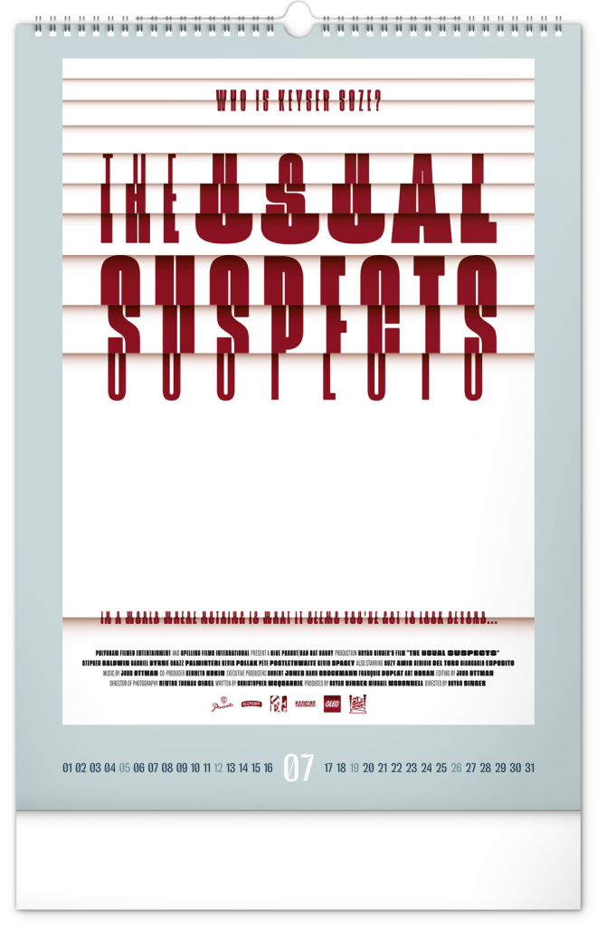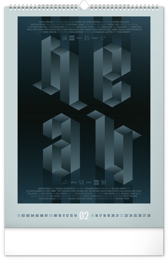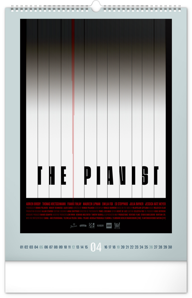 Nástěnný kalendář s alternativními filmovými plakáty od grafického designéra Olega Slepcoffa představuje originální pohled na slavné snímky jako Loupež po italsku, Pianista, Interstellar, Obvyklí podezřelí nebo Můj soused Totoro. Každý měsíc nabízí jedinečné grafické ztvárnění, které osloví milovníky filmu i designu. Kalendář je stylovým doplňkem každého interiéru.