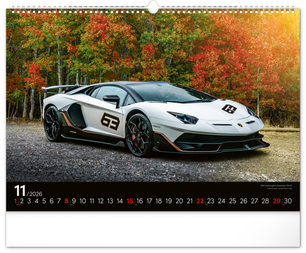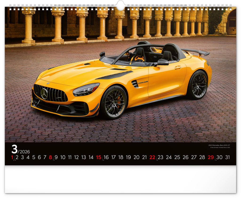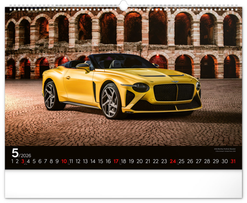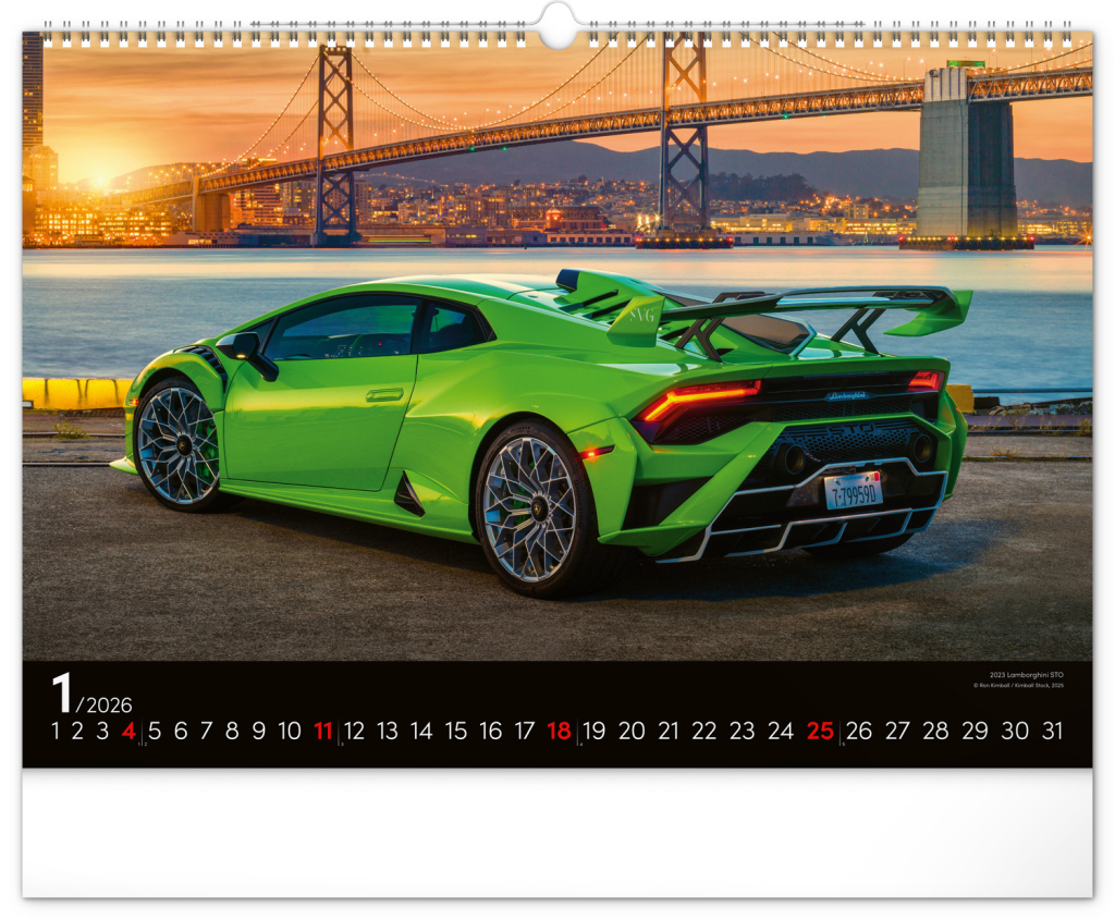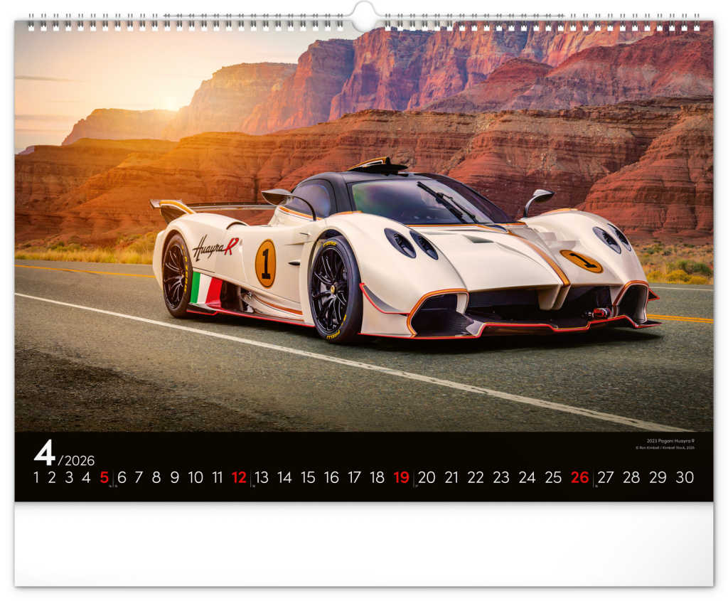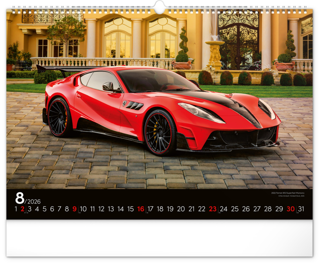 Nástěnný kalendář pro všechny milovníky rychlé jízdy a sportovních vozů. Dvanáct snímků luxusních sportovních vozů z celého světa na stránkách kalendáře v šířkovém formátu. Fotografie jsou doplněny univerzálním kalendáriem na černém pozadí.
