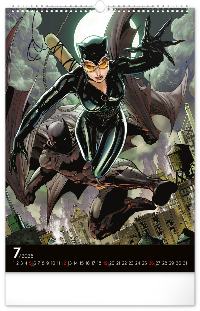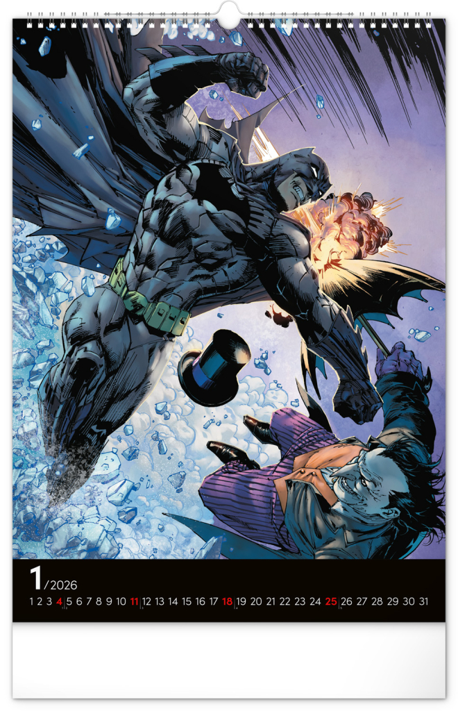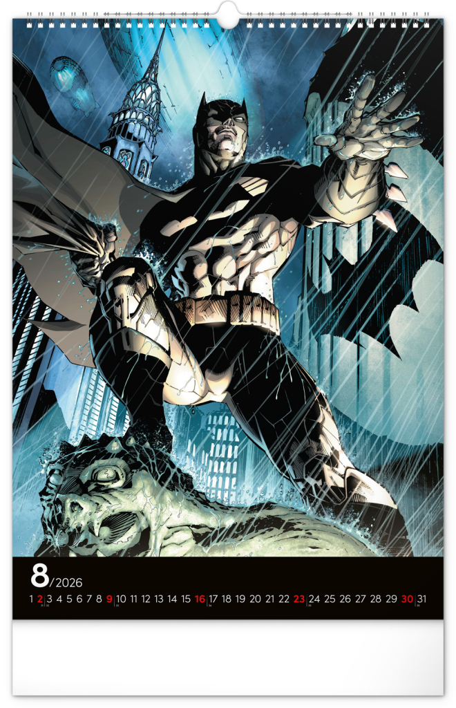 Nástěnný kalendář s obrázky z komiksů Batman potěší každého fanouška Temného rytíře. Nabízí ikonické ilustrace hrdiny z Gothamu na každý měsíc roku. Kalendář je ideální jako dekorace do pokoje nebo kanceláře.
