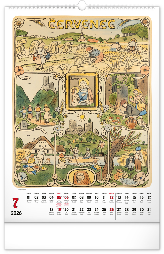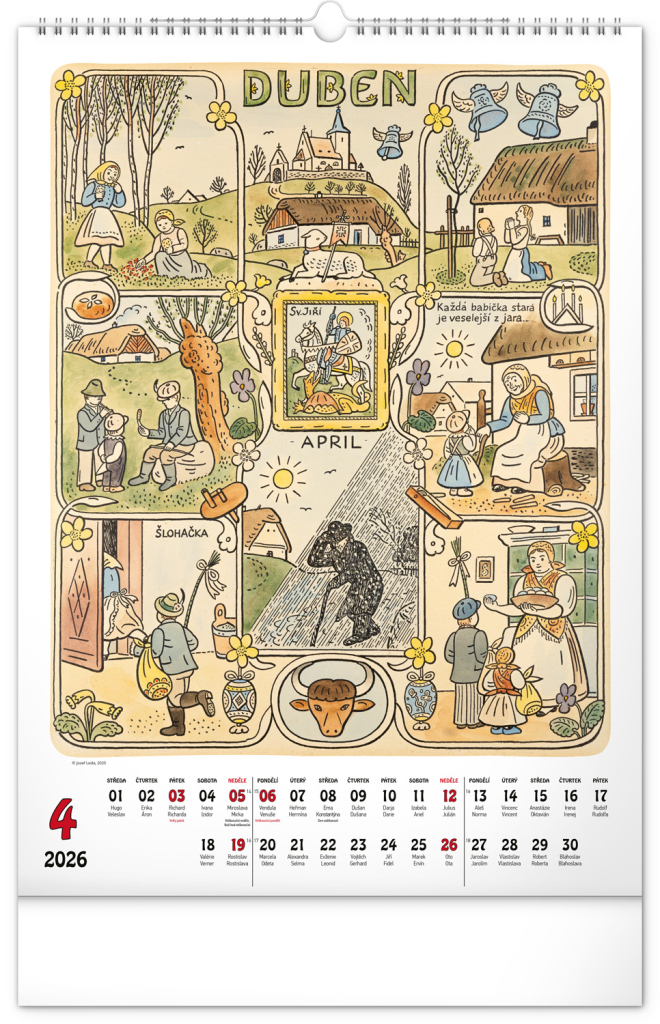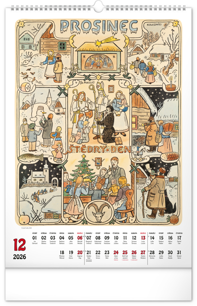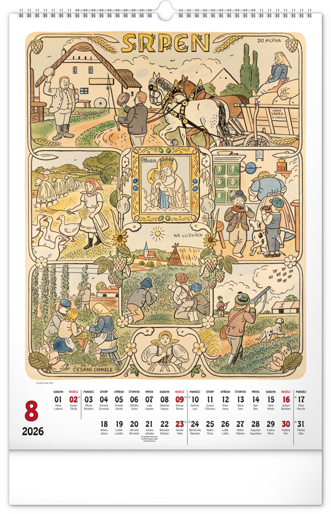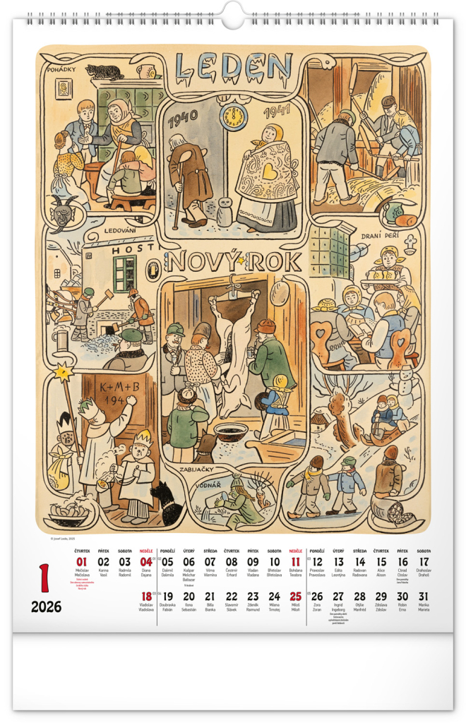 Nástěnný kalendář s ilustracemi Josefa Lady a cyklem 12 měsíců je vyhotoven v oblíbeném formátu, který osvěží každý interiér. V kalendáři je rovnocenně zahrnuta čeština a slovenština, ilustrace doplňuje kalendárium s českými a slovenskými jmeninami, svátky, památnými dny a měsíčními fázemi.