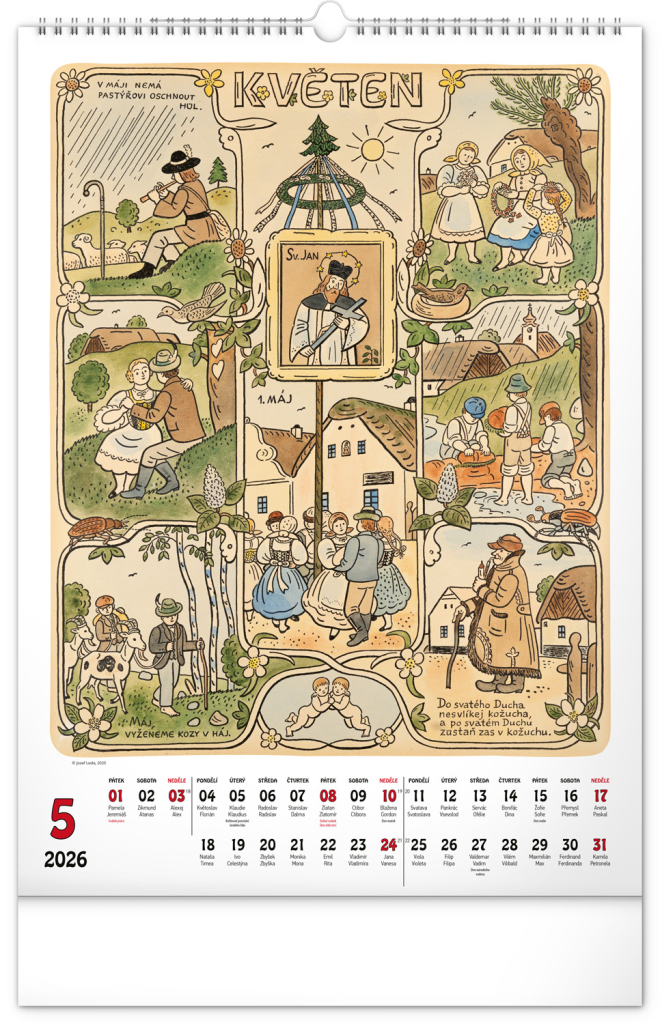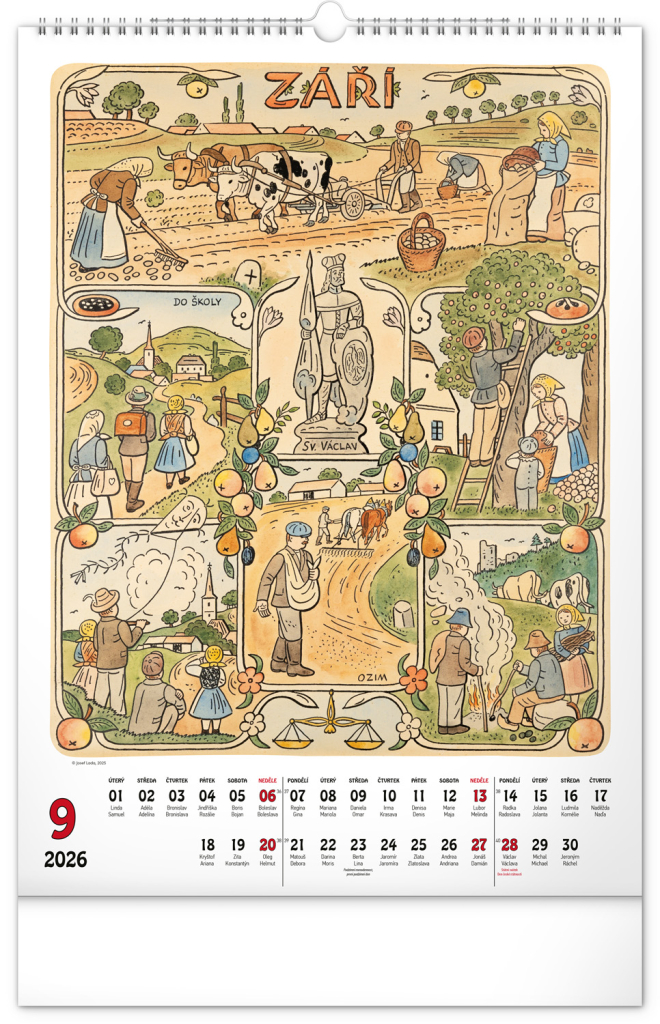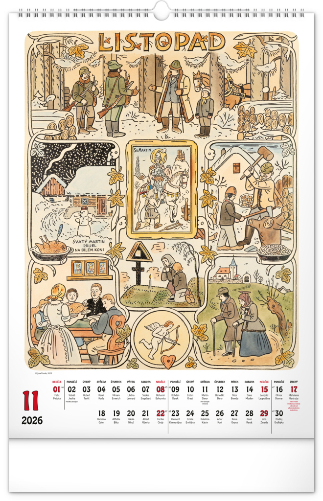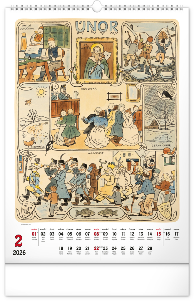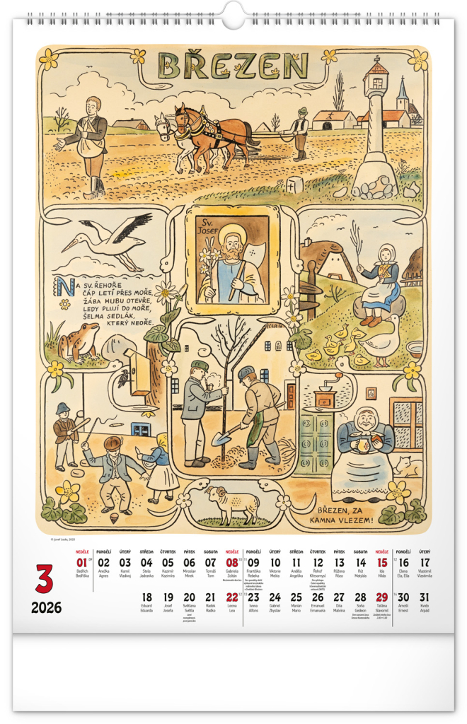 Nástěnný kalendář s ilustracemi Josefa Lady a cyklem 12 měsíců je vyhotoven v oblíbeném formátu, který osvěží každý interiér. V kalendáři je rovnocenně zahrnuta čeština a slovenština, ilustrace doplňuje kalendárium s českými a slovenskými jmeninami, svátky, památnými dny a měsíčními fázemi.