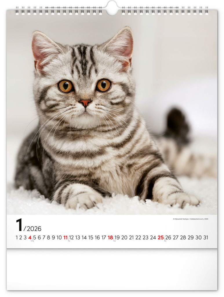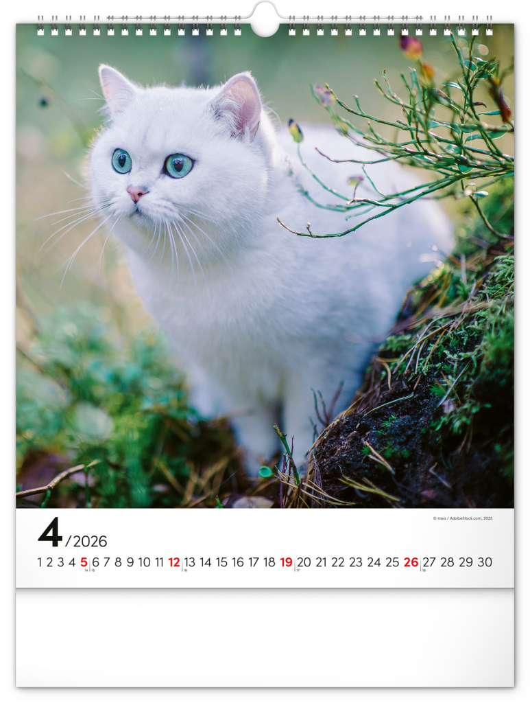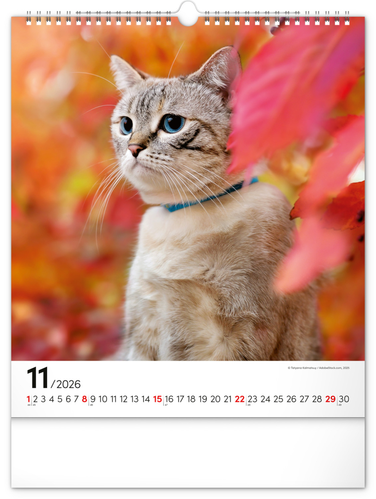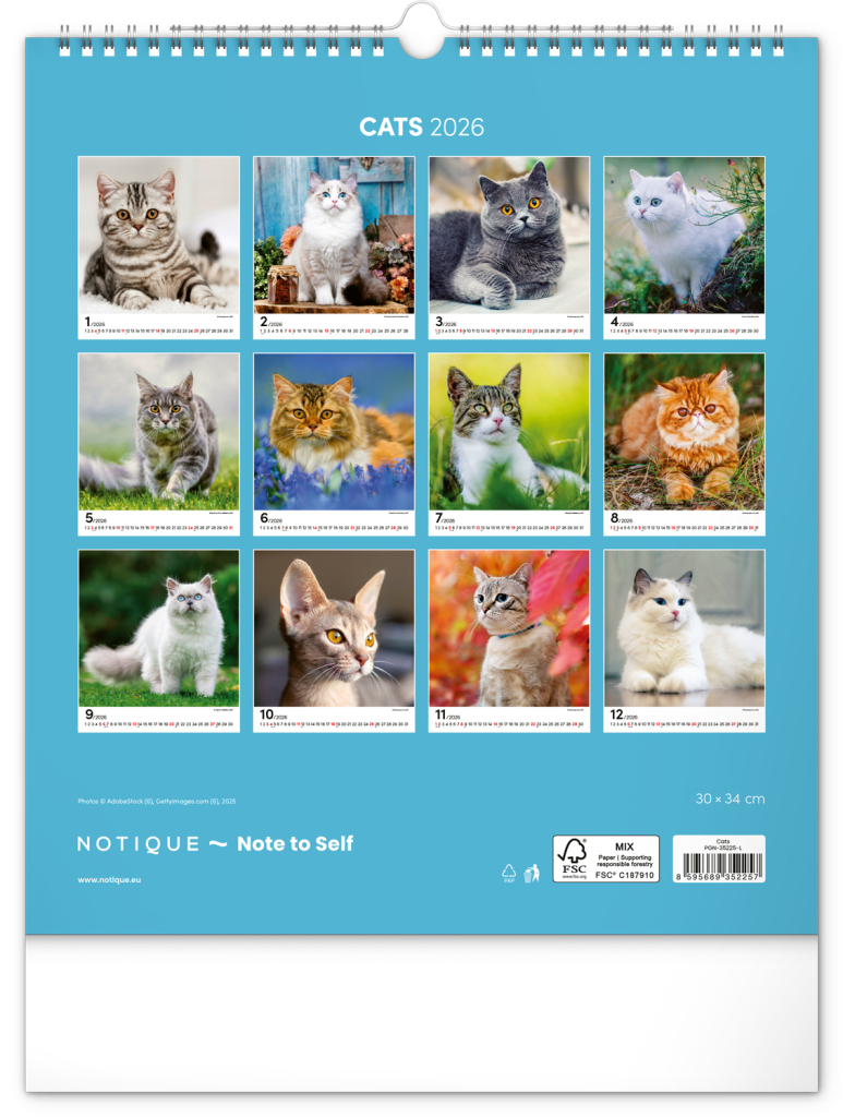 NOTIQUE Nástěnný kalendář Kočky 2026, 30 x 34 cm