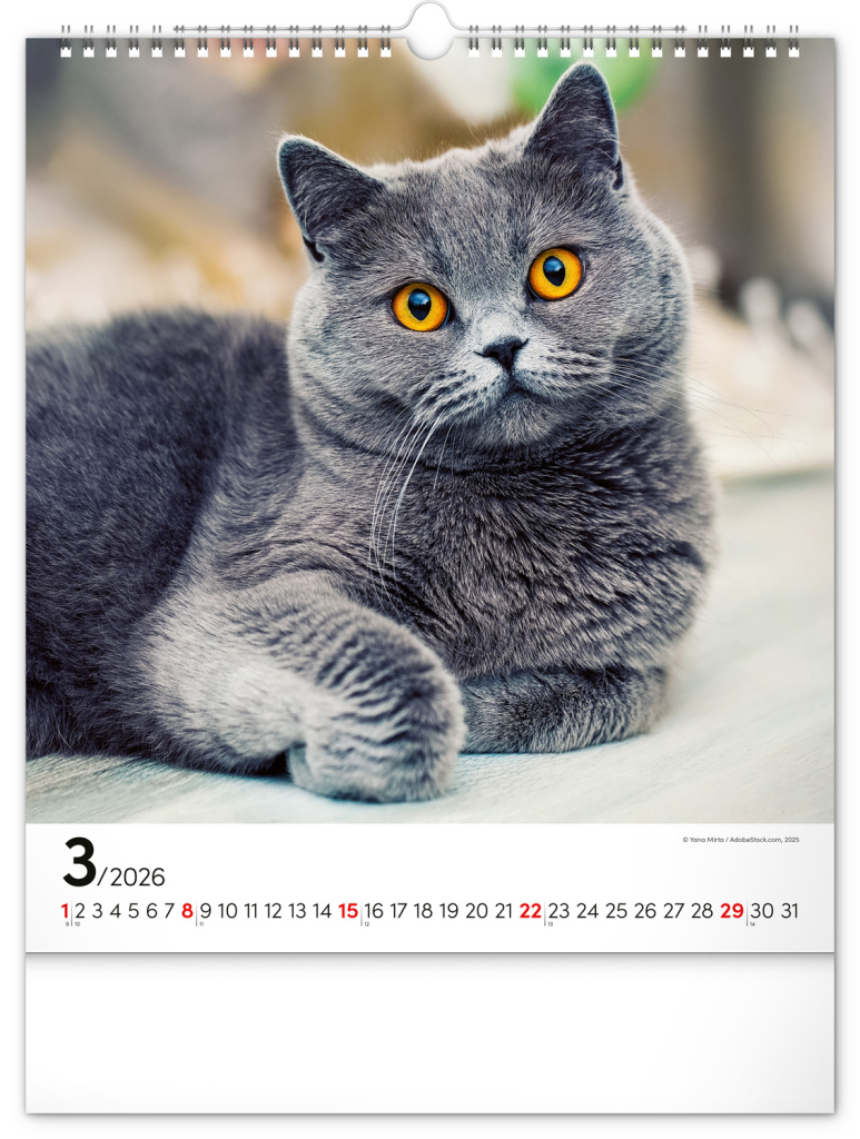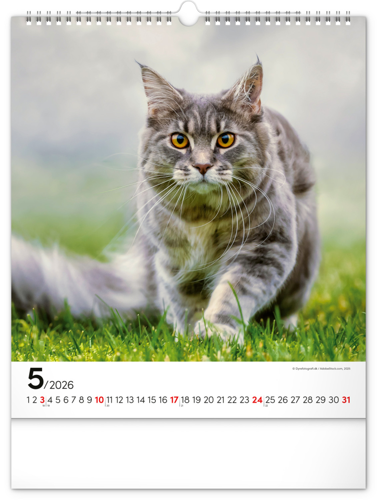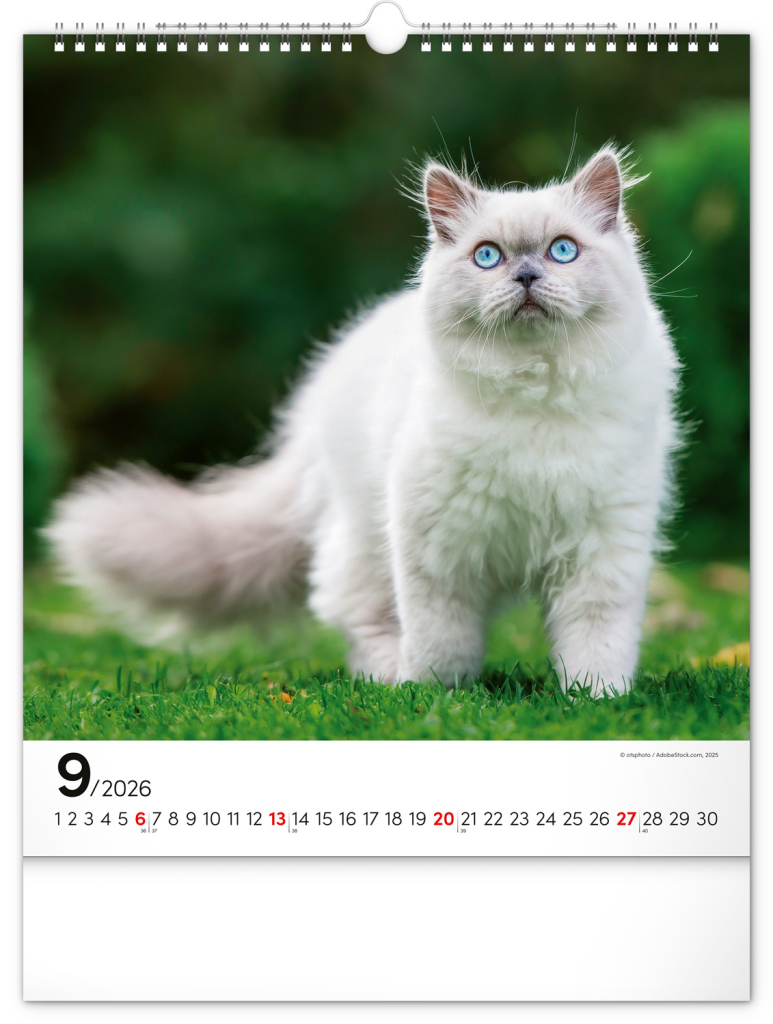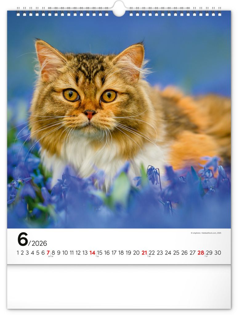 NOTIQUE Nástěnný kalendář Kočky 2026, 30 x 34 cm