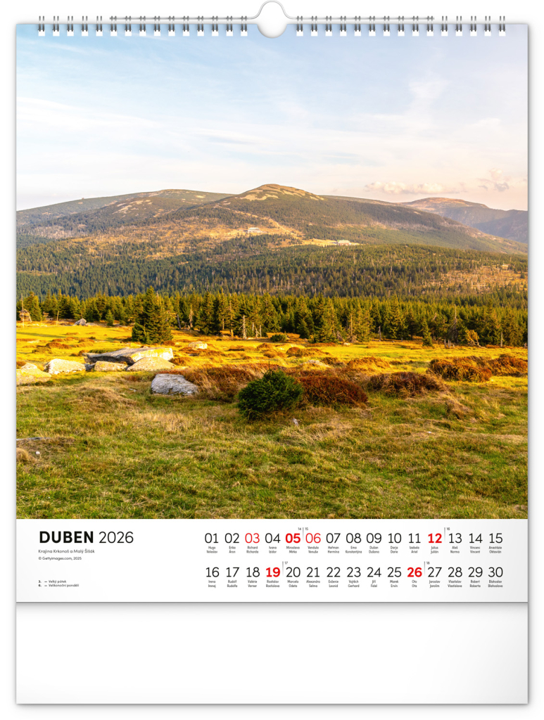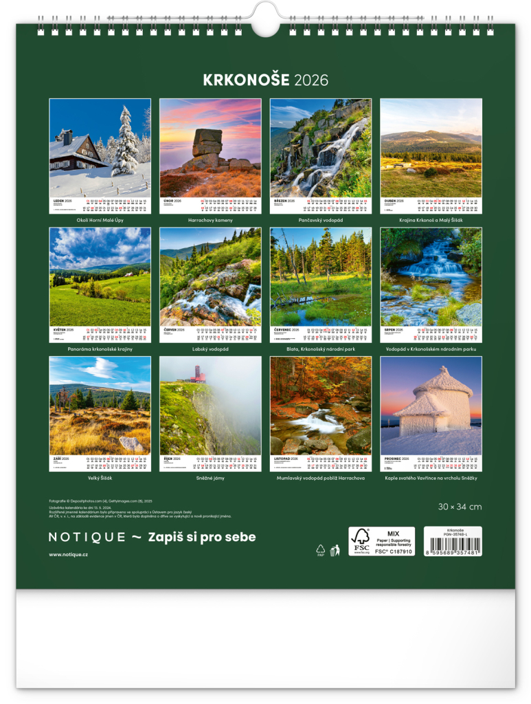 NOTIQUE Nástěnný kalendář Krkonoše 2026, 30 x 34 cm