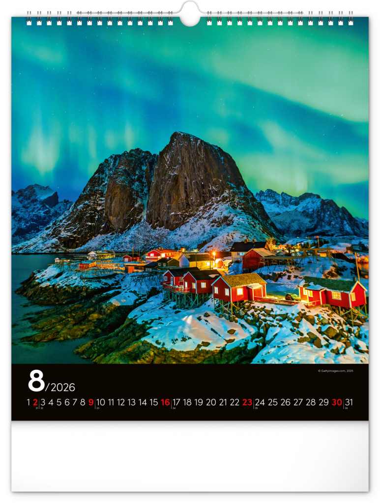 NOTIQUE Nástěnný kalendář Polární záře 2026, 30 x 34 cm