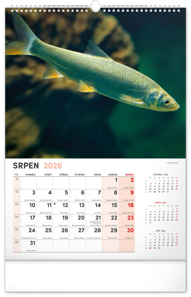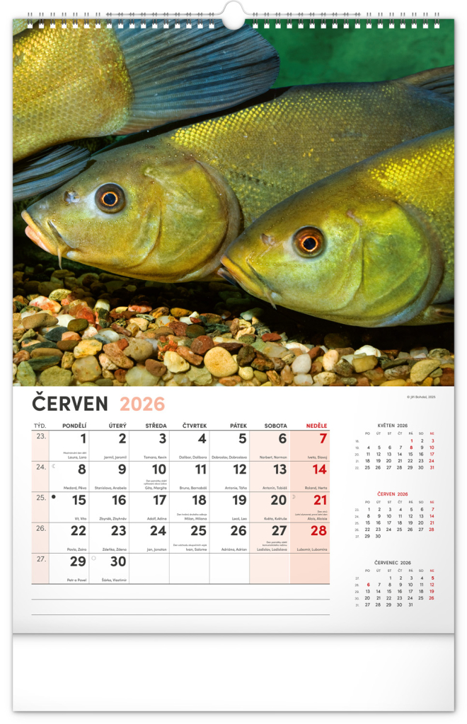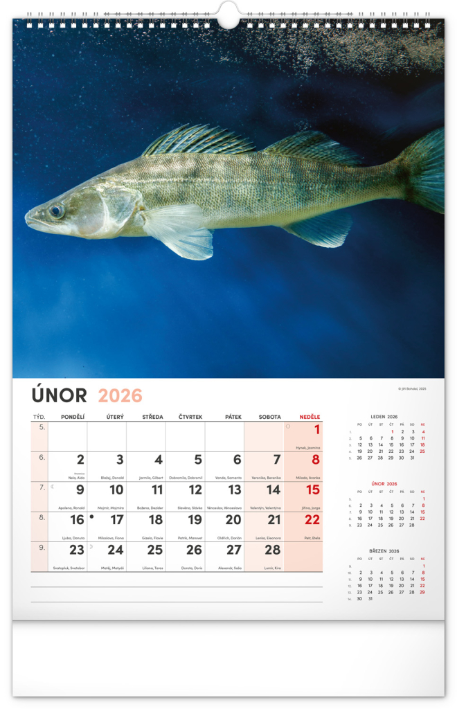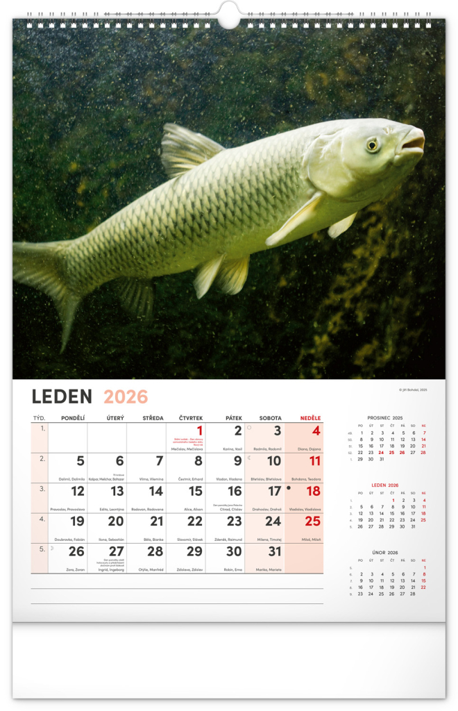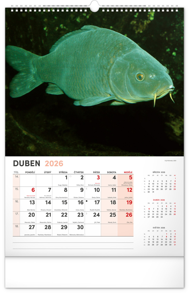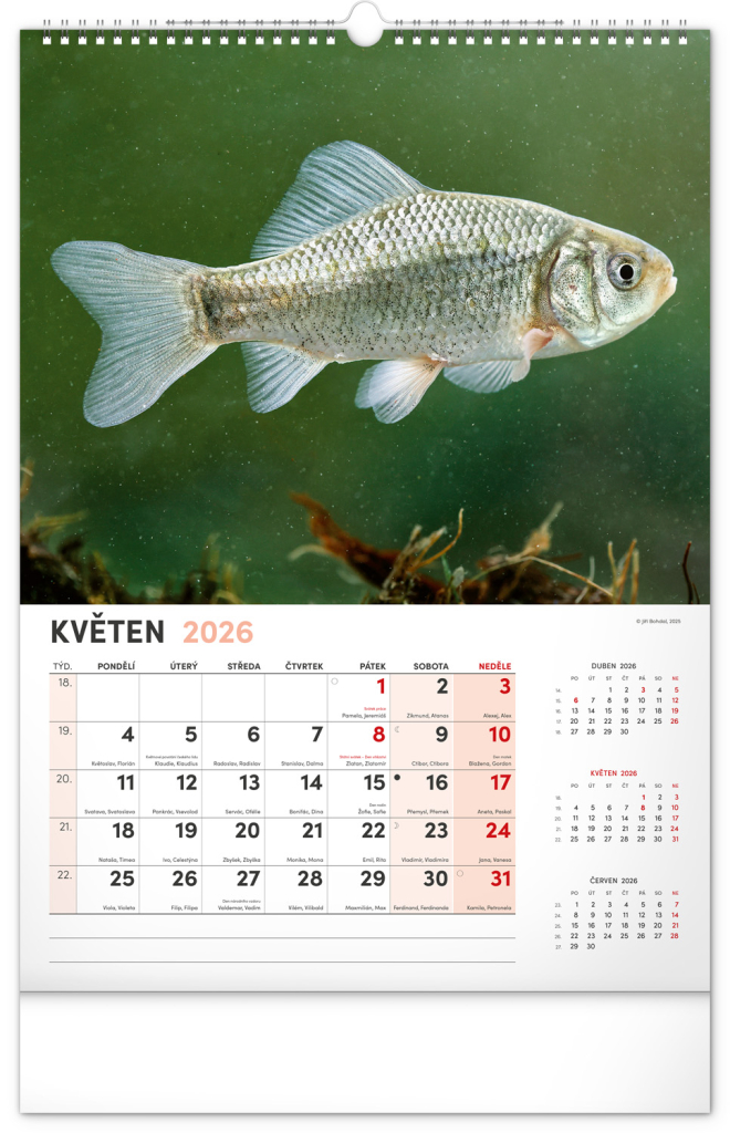 Dvanáct fotografií z vodního světa v tomto nástěnném kalendáři zachycují ty nejskvostnější úlovky. Rozšířené kalendárium obsahuje česká jména, svátky a památné dny, tříměsíční přehled na každé straně a prostor pro poznámky. Nadchne všechny vášnivé rybáře a milovníky vodních ploch.