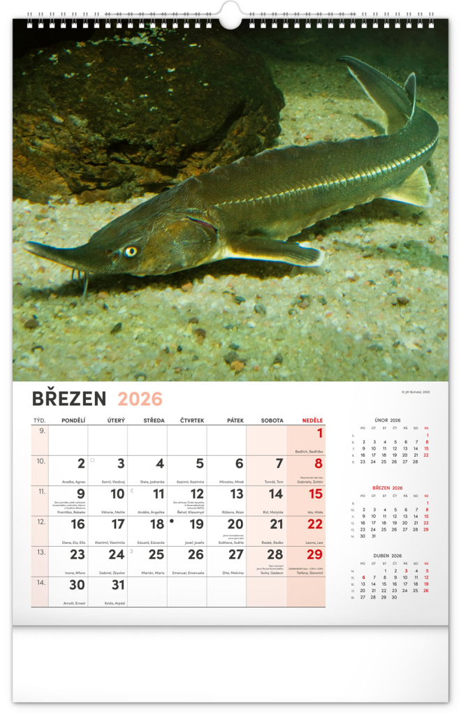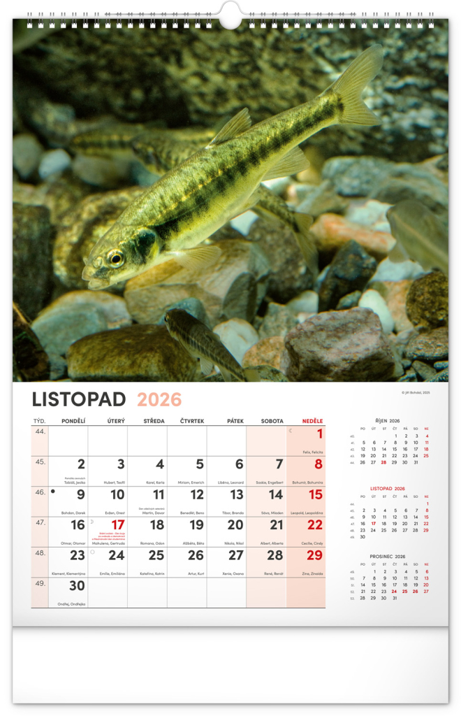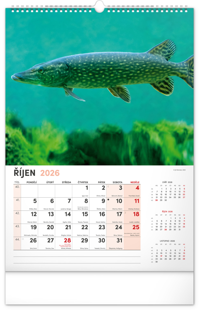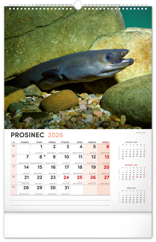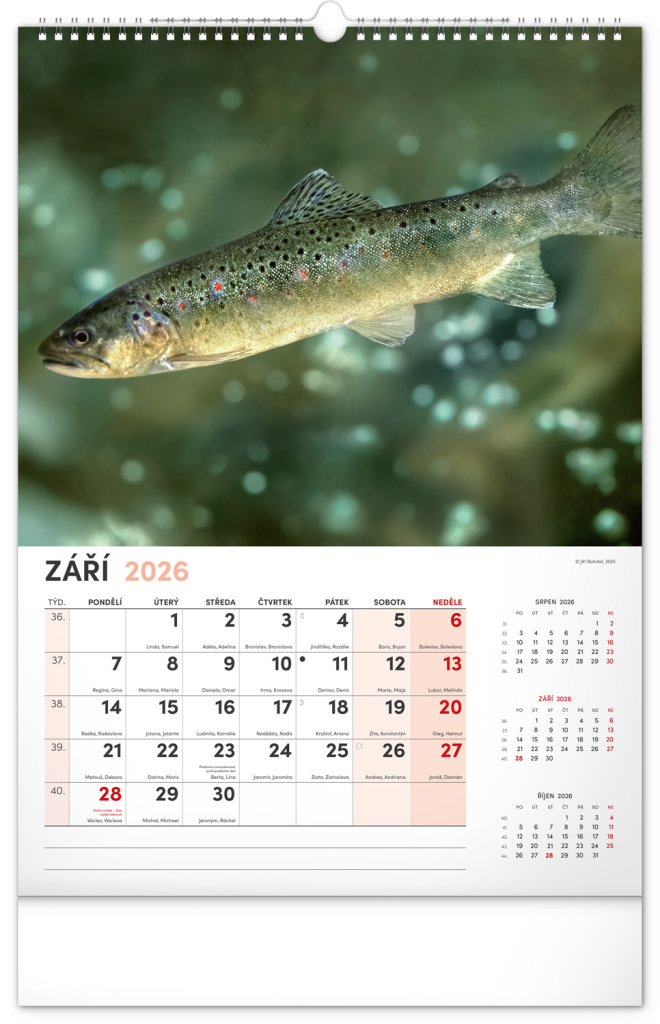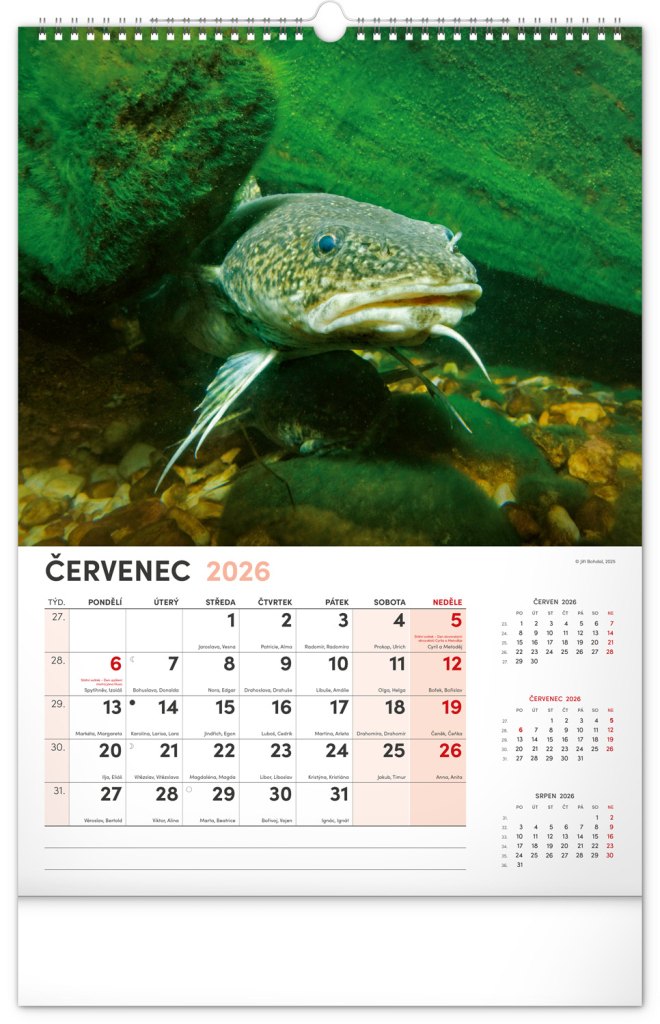 Dvanáct fotografií z vodního světa v tomto nástěnném kalendáři zachycují ty nejskvostnější úlovky. Rozšířené kalendárium obsahuje česká jména, svátky a památné dny, tříměsíční přehled na každé straně a prostor pro poznámky. Nadchne všechny vášnivé rybáře a milovníky vodních ploch.