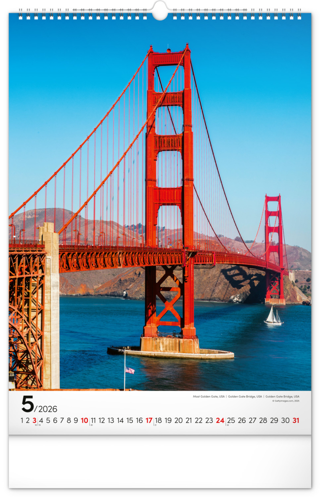 Procestujte prostřednictvím našeho kalendáře rozličné destinace, kde byly vytvořeny dechberoucí stavby. Sytě barevné výjevy hezky vyniknou na bílém pozadí s jednoduchým kalendáriem.