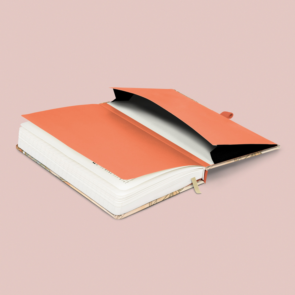 Kvalitní linkovaný notes v pevných deskách s uzavíráním na gumičku, poutkem na tužku a vnitřní kapsou na drobnosti. Uvnitř najdete 172 tečkovaných stran na žlutém papíře pro zapsání všech vašich nápadů. Linkovaný zápisník můžete použít jako deník, psát do něj hluboké myšlenky nebo pracovní poznámky.