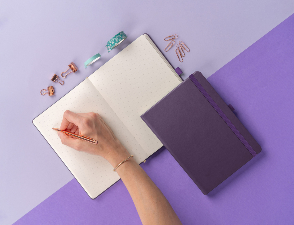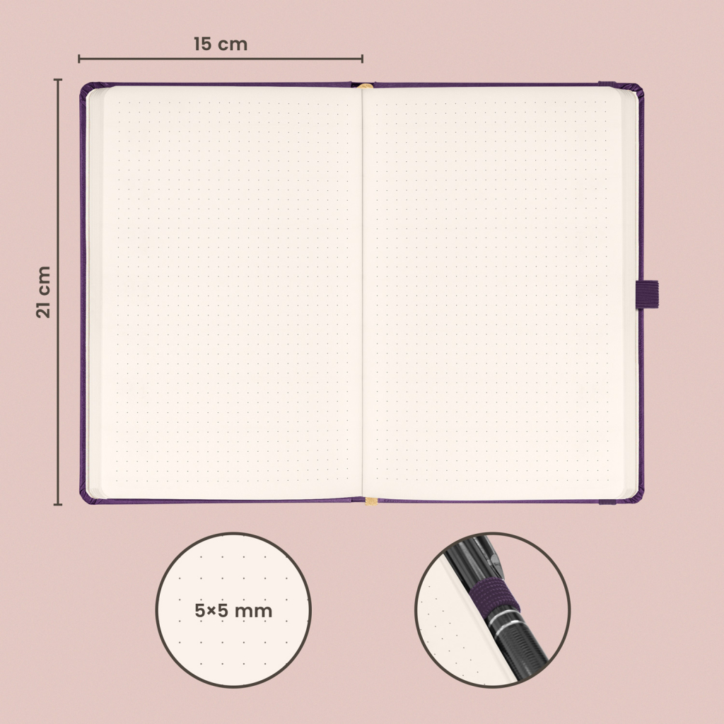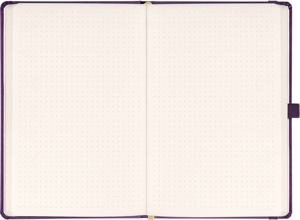 Tečkovaný notes Aprint Neo ve fialovém provedení. Klasika i elegance, nejžádanější povrch, na který lze snadno razit firemní loga s jemnou strukturou.