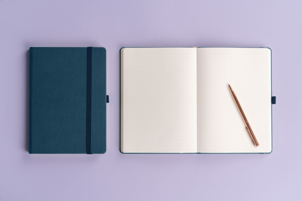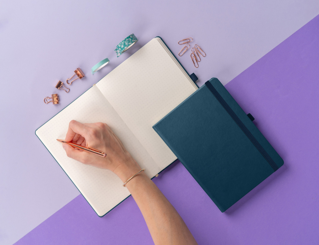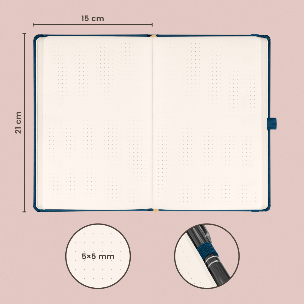 Tečkovaný notes Aprint Neo v modrém provedení. Klasika i elegance, nejžádanější povrch, na který lze snadno razit firemní loga s jemnou strukturou.