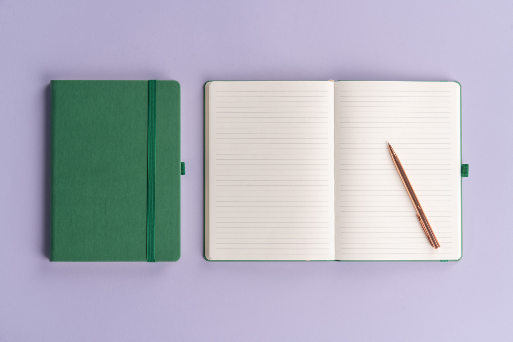 Linkovaný notes Aprint v zeleném provedení. Klasika i elegance, nejžádanější povrch, na který lze snadno razit firemní loga s jemnou strukturou.