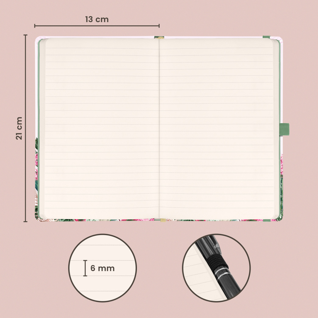 Kvalitní linkovaný notes v pevných deskách s uzavíráním na gumičku, poutkem na tužku a vnitřní kapsou na drobnosti. Uvnitř najdete 172 tečkovaných stran na žlutém papíře pro zapsání všech vašich nápadů. Linkovaný zápisník můžete použít jako deník, psát do něj hluboké myšlenky nebo pracovní poznámky.