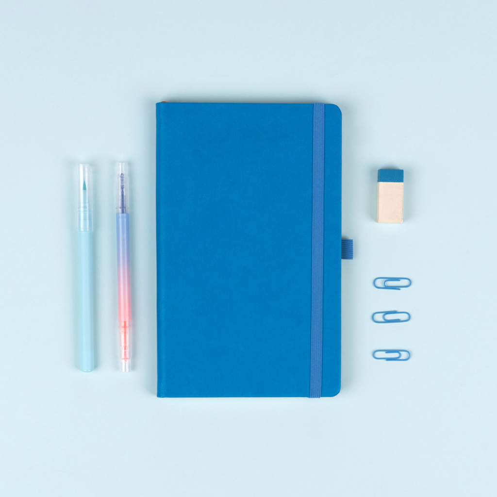 Praktický a lehký linkovaný notes v klasické modré barvě má povrch s hrubší strukturou, na který si můžete nechat vyrazit logo společnosti. Notes má pevnou knižní vazbu a zakulacené rohy, poutko na tužku, elastickou gumičku a textilní záložku. Linky mají 6 mm a jsou na kvalitním žlutém papíře.
