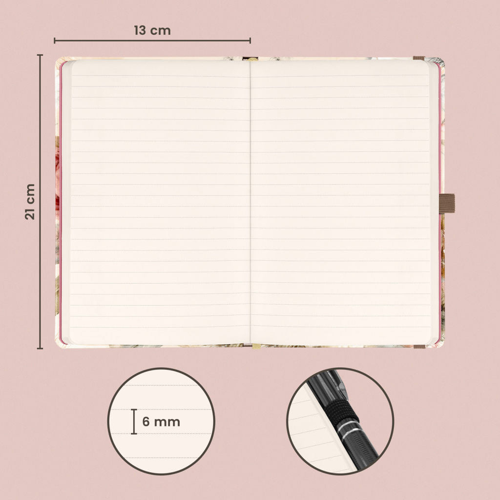NOTIQUE Notes Pudrové květy, linkovaný, 13 x 21 cm
