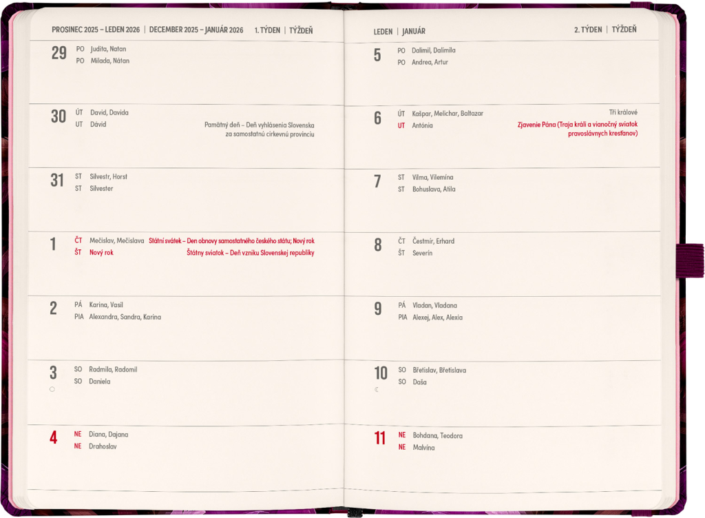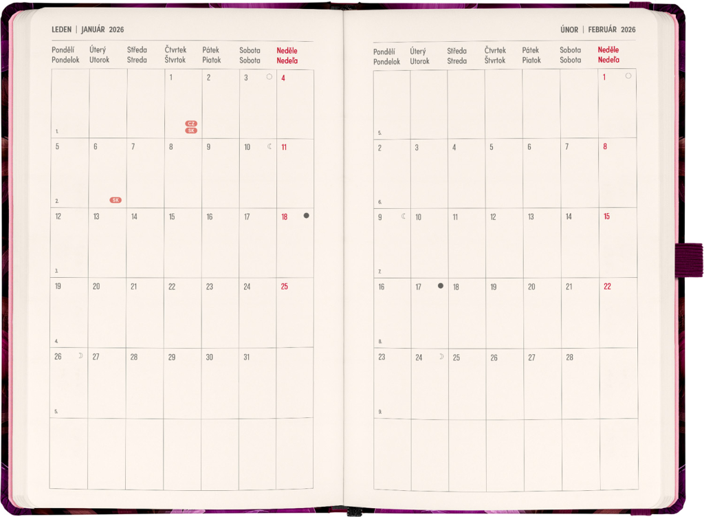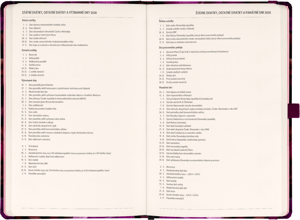 DVA SVĚTY. JEDEN PRODUKT. Hledáte dokonalou kombinaci plánování a zapisování poznámek? PLANBOOK vám přináší to nejlepší z obou světů! Perfektní spojení diáře a zápisníku – první polovina obsahuje čtrnáctidenní horizontální kalendárium s českými a slovenskými svátky, zatímco druhá polovina nabízí linkované stránky pro vaše poznámky. Praktický, stylový a dokonale přizpůsobený vašim potřebám – ať už si plánujete den, nebo přemýšlíte nad dalším velkým projektem. PLANBOOK je ideální pro všechny, kteří milují organizaci a kreativitu na jednom místě.