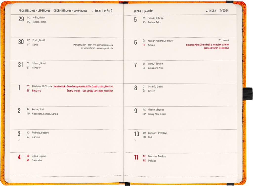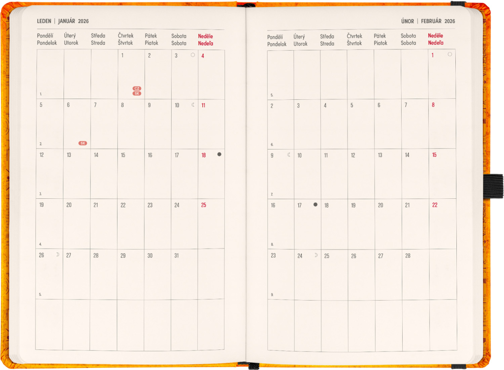 | vazba: | tuhá knižní s gumičkou na uzavření a poutkem na tužku |
