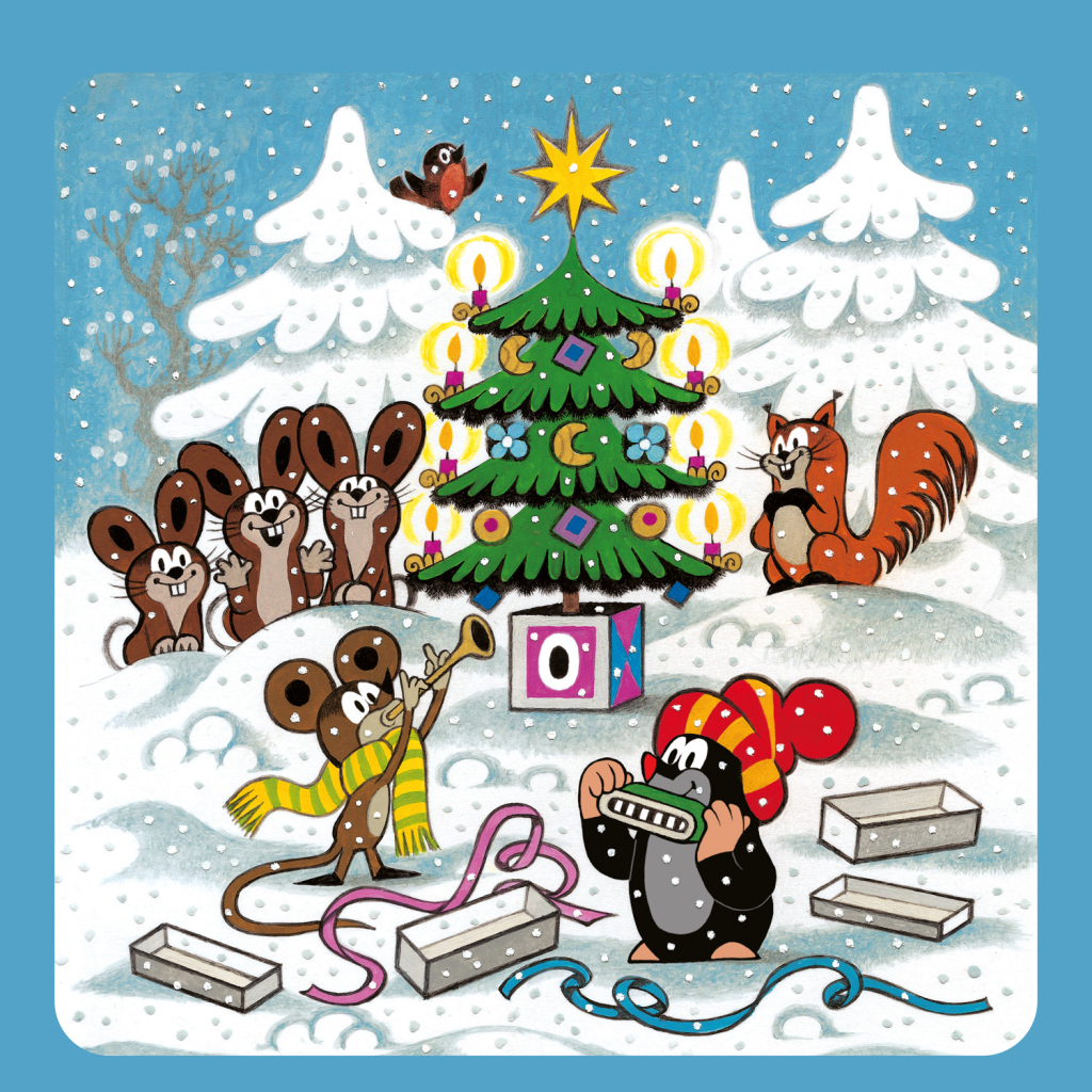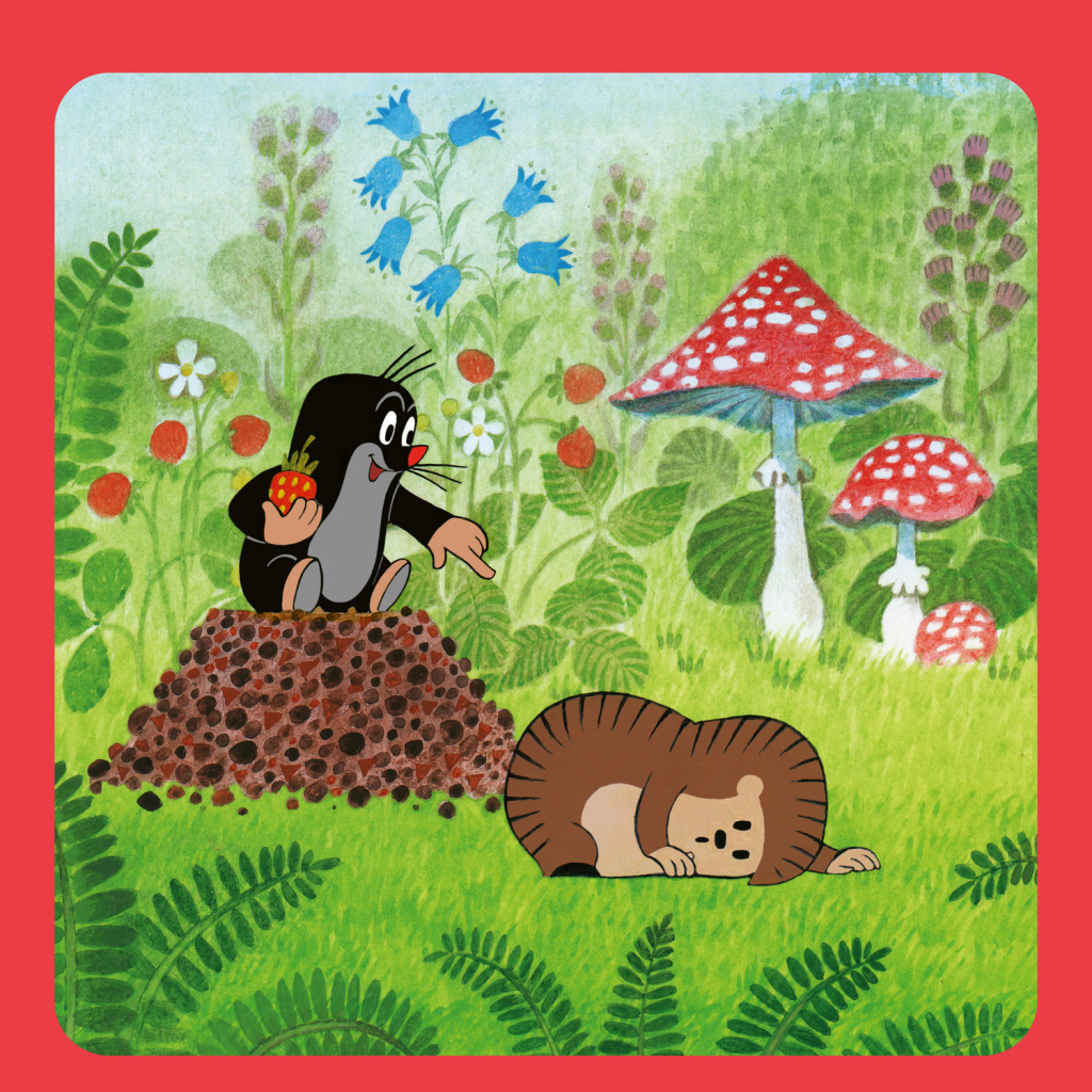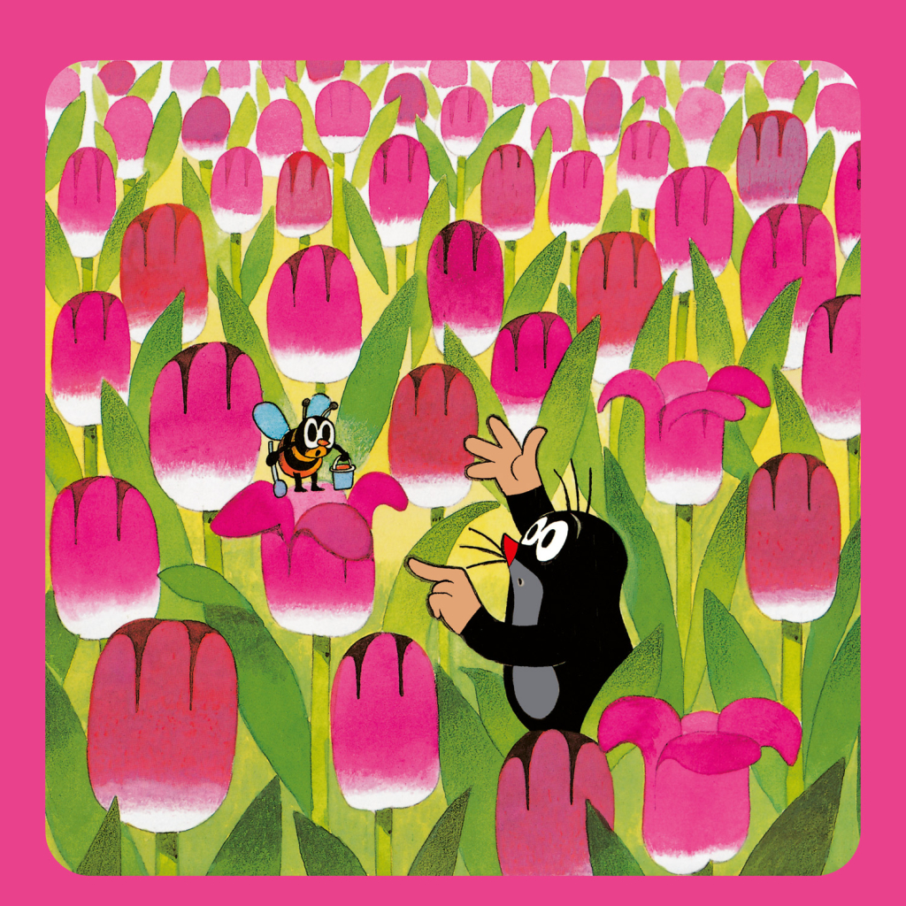 Krteček – postava mnoha kreslených příběhů Zdeňka Milera, které obletěly celý svět. Poznámkový kalendář s ilustracemi z pohádek doplňuje přehledné kalendárium od září 2025 do prosince 2026 v osmi jazycích, měsíční fáze, důležité svátky a prostor pro poznámky na každý den.