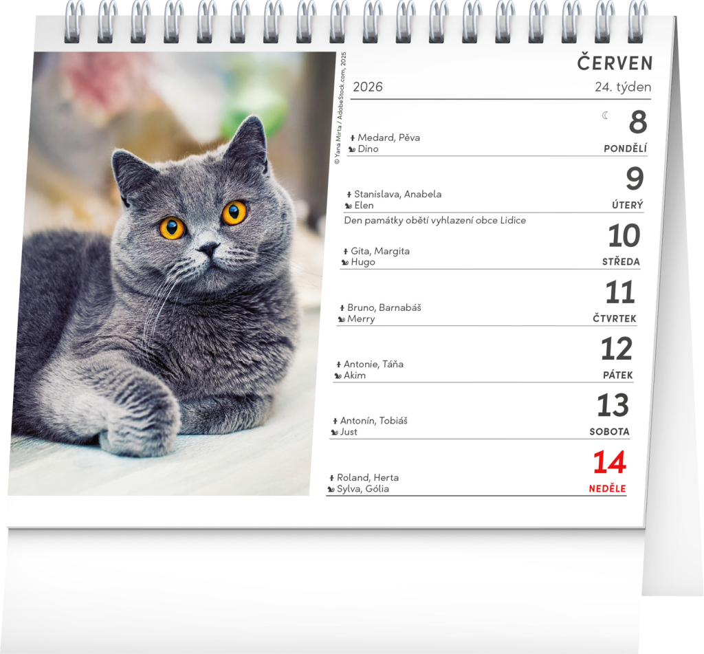 NOTIQUE Stolní kalendář Kočky – se jmény koček 2026, 16,5 x 13 cm