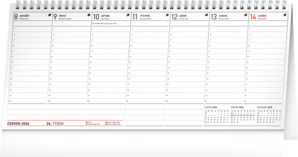 Stolní kalendář se sloupcovým kalendáriem obsahuje všechny termíny daňových povinností, česká jména, svátky a památné dny a tříměsíční přehled u každého týdne. S tímto kalendářem již nezapomenete na žádnou svou schůzku či jednání, a ještě vám zbyde dostatek místa na další poznámky a záznamy.