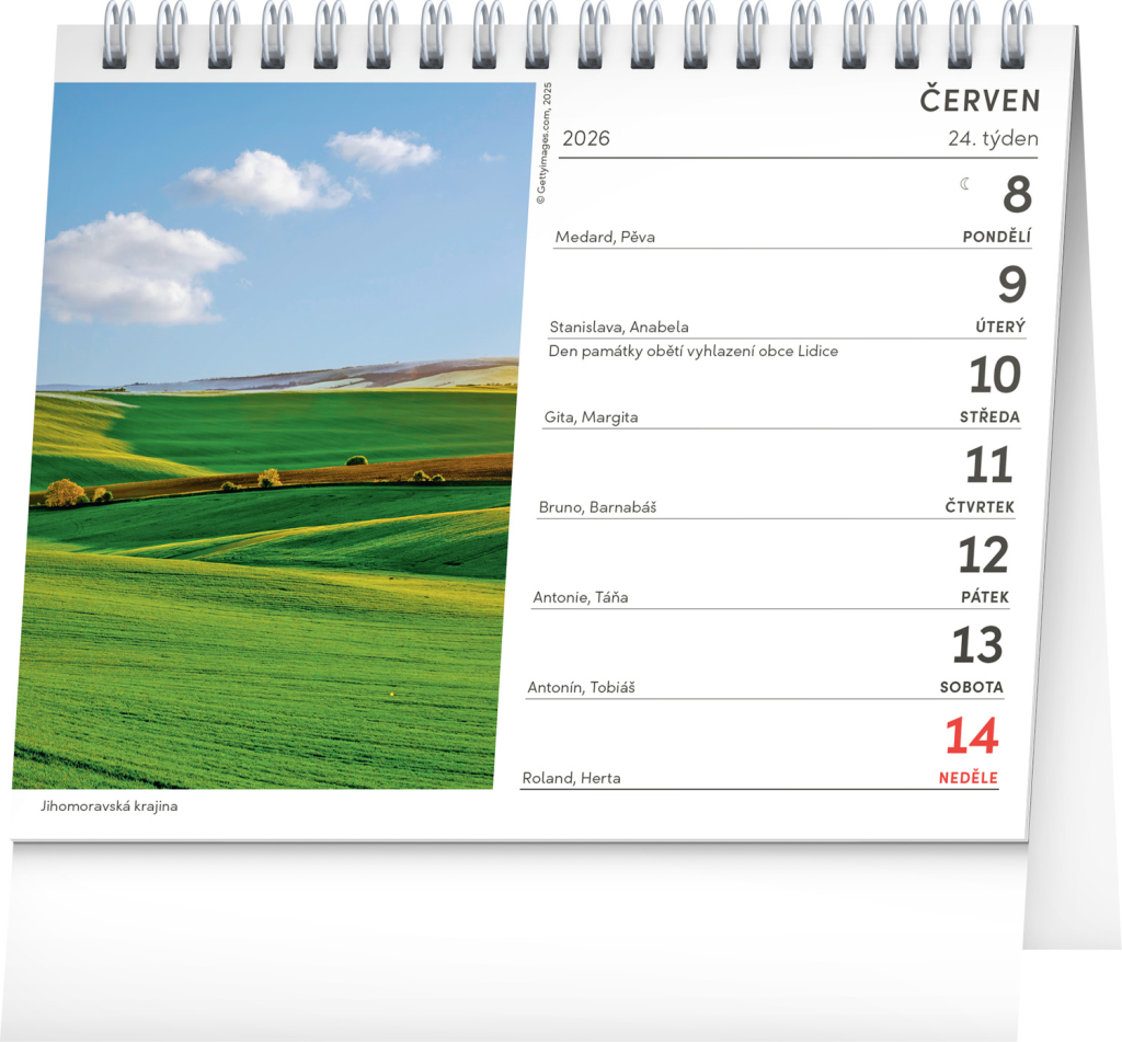 Objevte krásu krajiny z Čech, Moravy i Slezska prostřednictvím fotografií na každý týden. Stolní kalendář s českým kalendáriem obsahuje svátky a památné dny, měsíční fáze a přehled na celý rok.