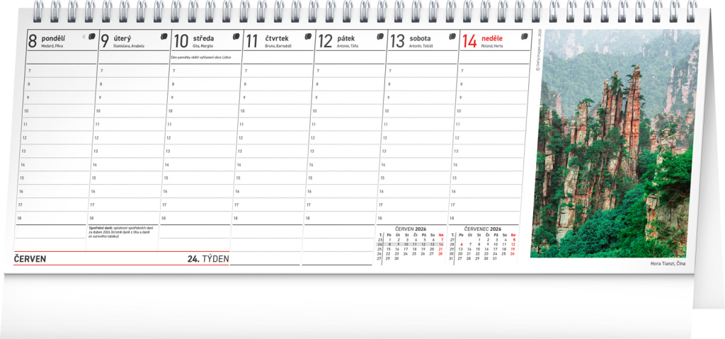 Termíny daňových povinností ve stolním kalendáři doplněném o 53 snímků zachycujících krásy ze všech koutů světa. Ideální kombinace kalendáře, která snoubí povinnosti a odreagování. České týdenní kalendárium s prostorem pro vaše poznámky obsahuje jména, svátky a významné dny.