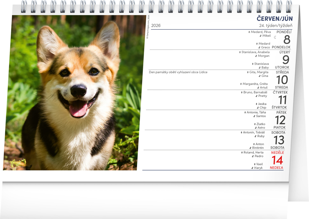 NOTIQUE Stolní kalendář Psi – Psy CZ/SK 2026, 23,1 x 14,5 cm